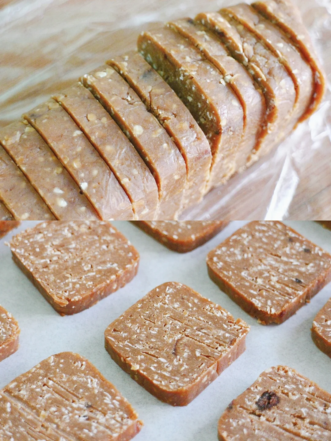 别有一番风味的饼干!加了红糖、海盐和燕麦,浓郁酥脆,越嚼越香,好吃又管饱,已加入追剧零食[飞吻R] - 🔹食材🔹 黄油……80g 红糖……40g 海盐……1g 鸡蛋……30g 低粉……140g 好哩燕麦麸皮……30g - 🔹做法🔹 ① 软化的黄油加红糖和海盐打至蓬松发白; ② 分3次加入鸡蛋打发均匀; ③ 倒入过筛的低粉和燕麦麸皮,翻拌均匀; ④ 整理成方形,放入冰箱冷冻30分钟; ⑤ 取出切片,均匀摆在烤盘上,入180度烤箱烘烤15分钟即可❤️