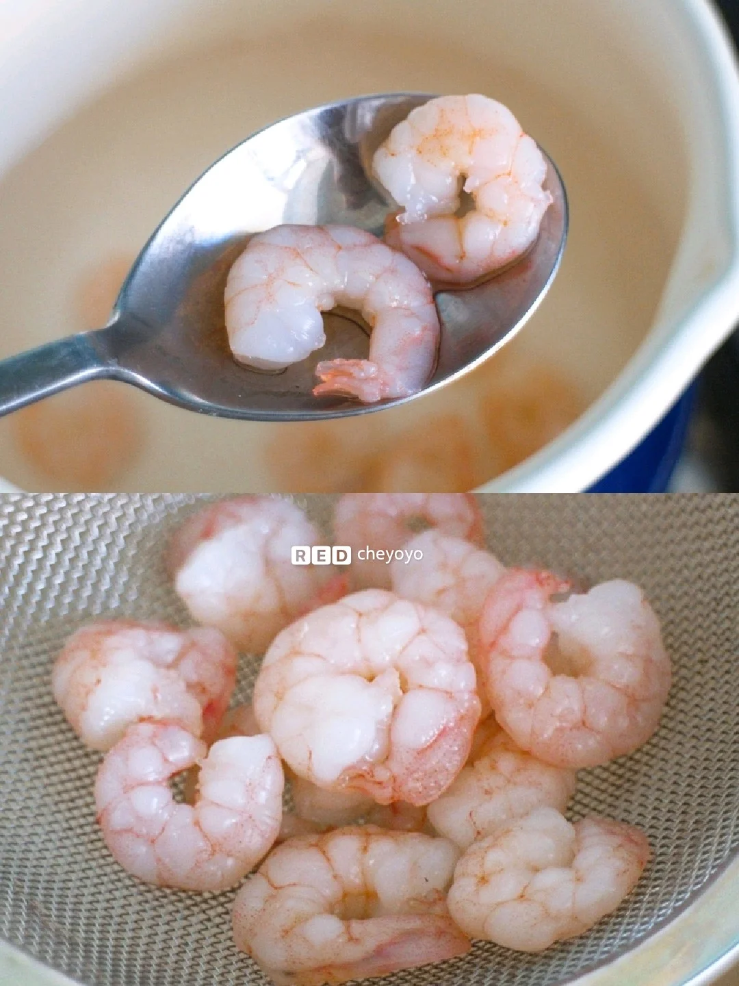 4⃣虾仁洗净去虾线,焯水至变色,捞出冷却备用;