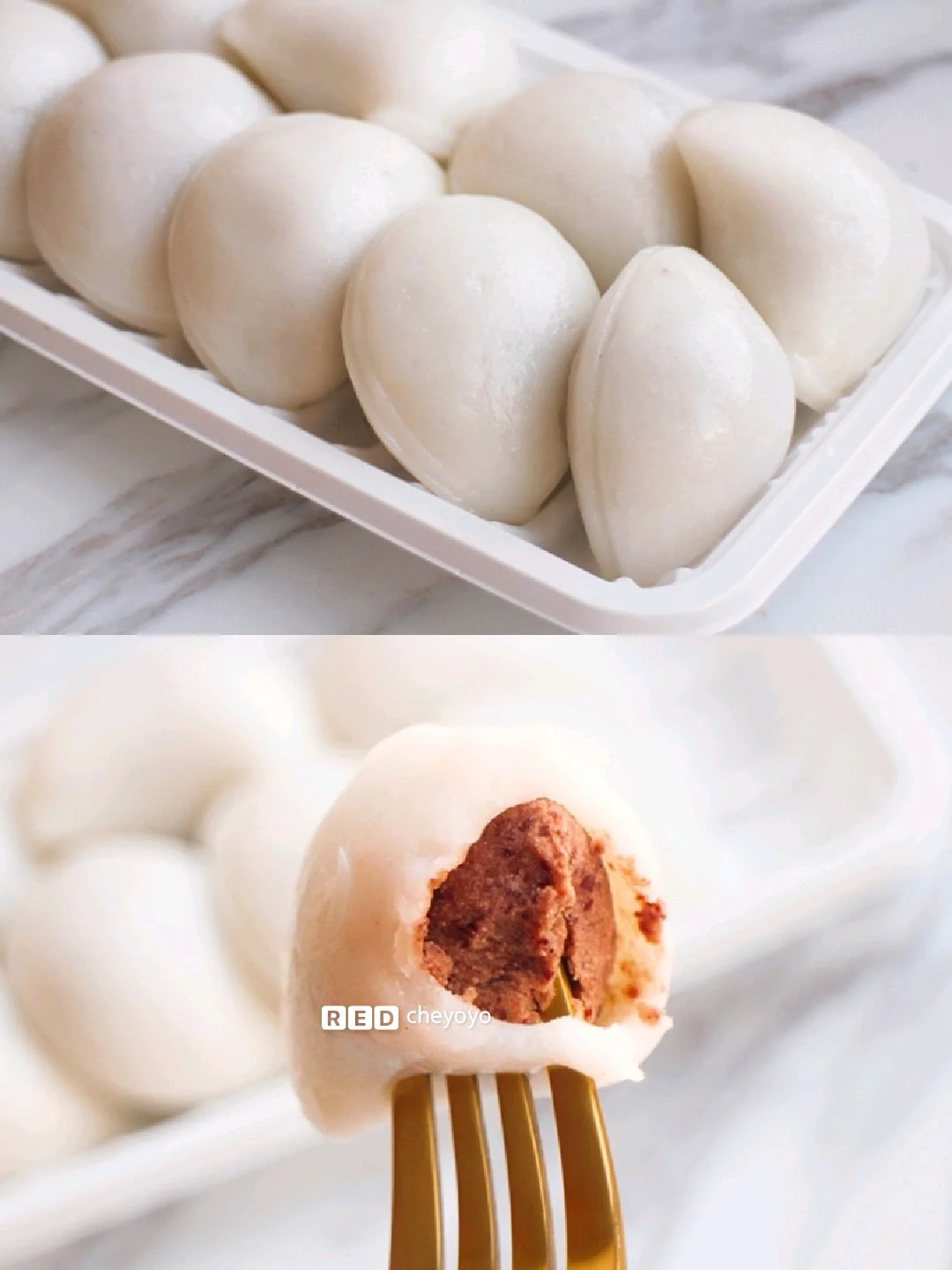 外皮劲道不黏牙,红豆内馅沙糯不腻甜。隔夜后会硬,可以上锅蒸一下。