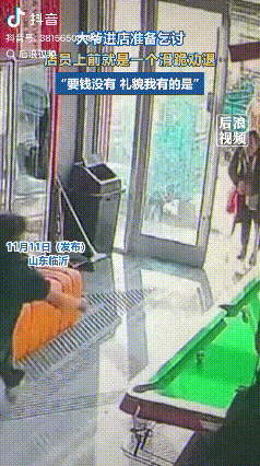 不按套路出牌!山东临沂,一位拄着双拐的大爷来到店门口准备进店乞讨,店员发现后一个