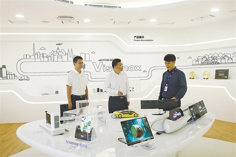 在维信诺(固安)科技有限公司,工作人员正在进行实地走访。(资料片)