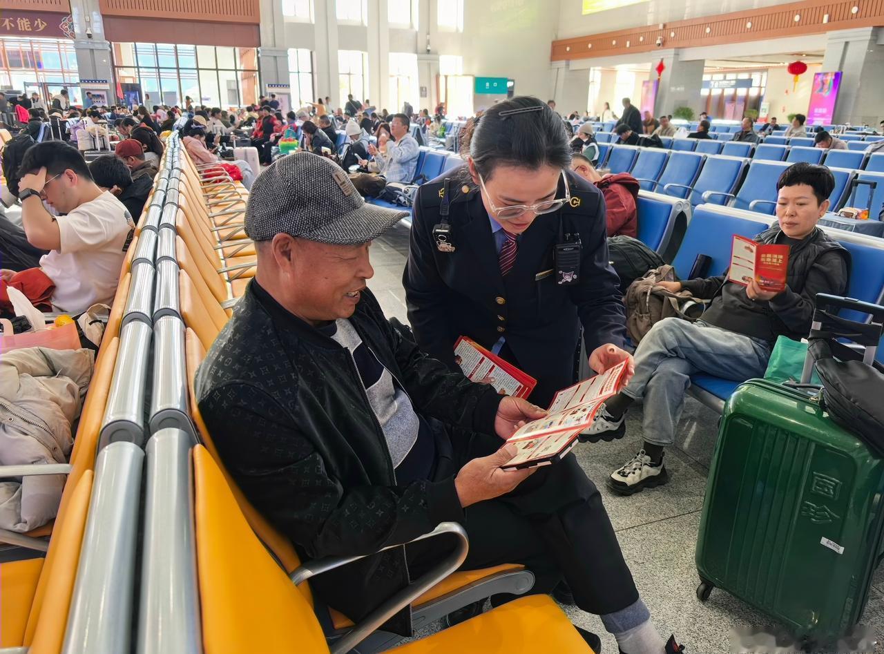 广通车务段香格里拉站结合今年全国消防宣传月活动主题,在候车室开展安全用火用电宣传。车站工作人员以发放宣传手册的方式,向旅客普及用火用电安全知识,增强旅客安全用火用电意识,筑牢消防安全防线。(图文 徐玉玲)@昆明铁路广通车务段