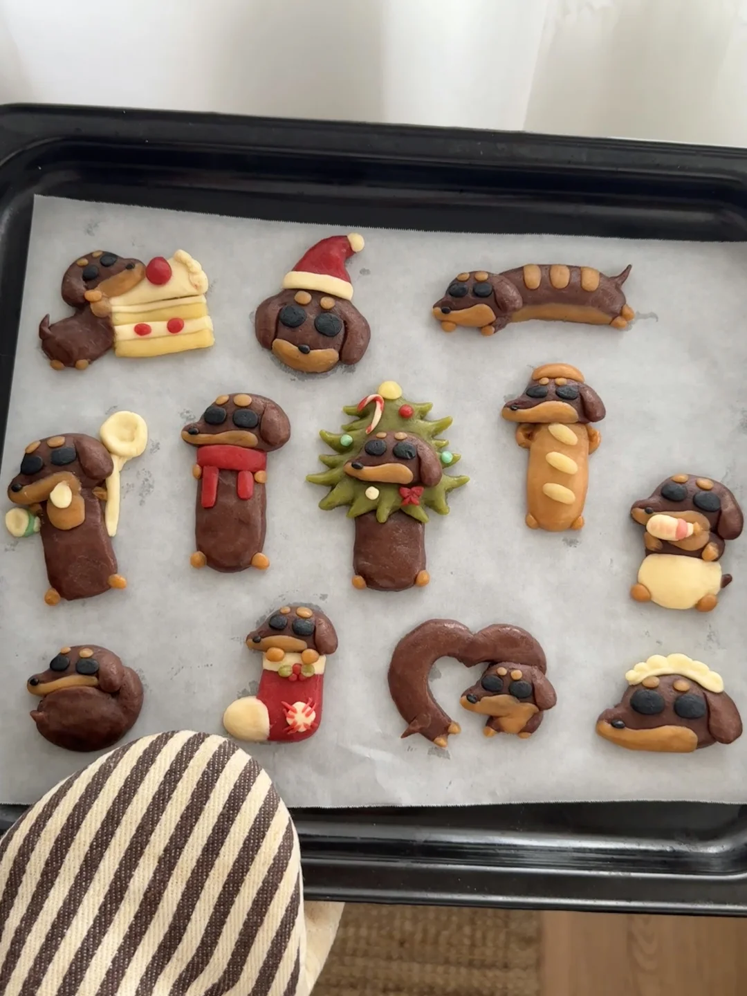 3️⃣将面团捏成不同造型的腊肠点心,做好的曲奇送入冰箱冷藏2小时或隔夜