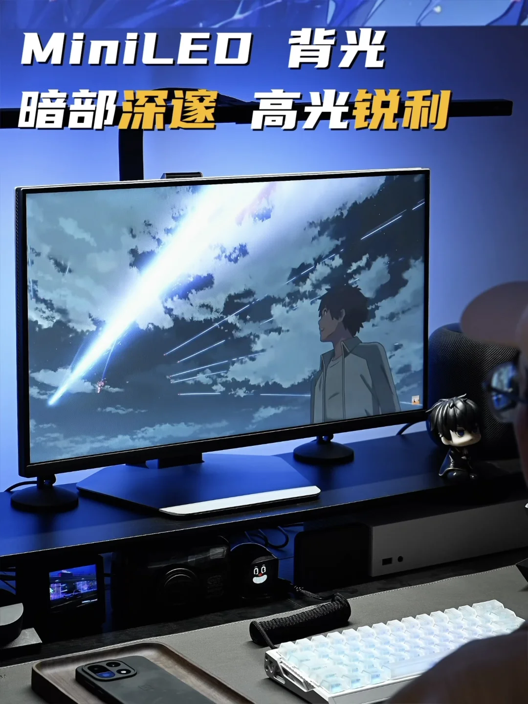不打游戏时,它就是我的私人影院。它用了180分区 MiniLED 背光,把屏幕背后的灯珠分成了180个独立小区域来控制明暗。看电影时,黑的地方能黑下去,亮的细节又特别通透锐利,画面立体感一下就上来了。