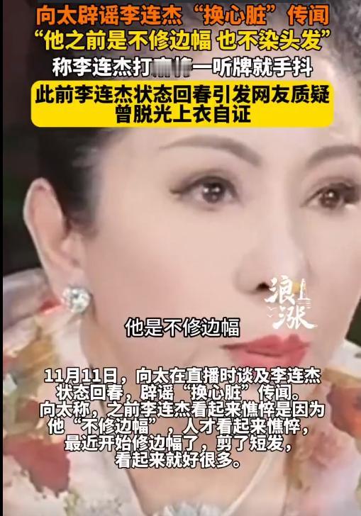 向太回应李连杰没换心! 现在染了头发、修边幅了! 可这蹦蹦跳跳的样子,未免太过于活泼了吧,而且打拳的样子,也未必太阴柔了吧!是我不认识以前的李连杰,还是现在的李连杰他真的变了呢? 容貌上的年轻,确实可以用化妆和医美来解释,可是行为上却像极了一个调皮的小孩,这个又该怎么解释呢?反正我是想不明白!