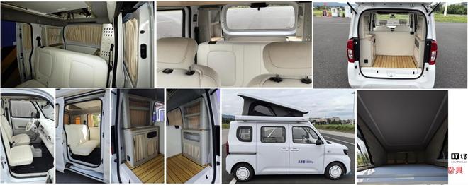 该车分类为“纯电动宿营车”,来自青岛五菱专用汽车有限公司,尺寸为3685x1530x1900mm,轴距2600mm,额定载客(含驾驶员)4人,预计是由原版五菱之光EV改造而来。