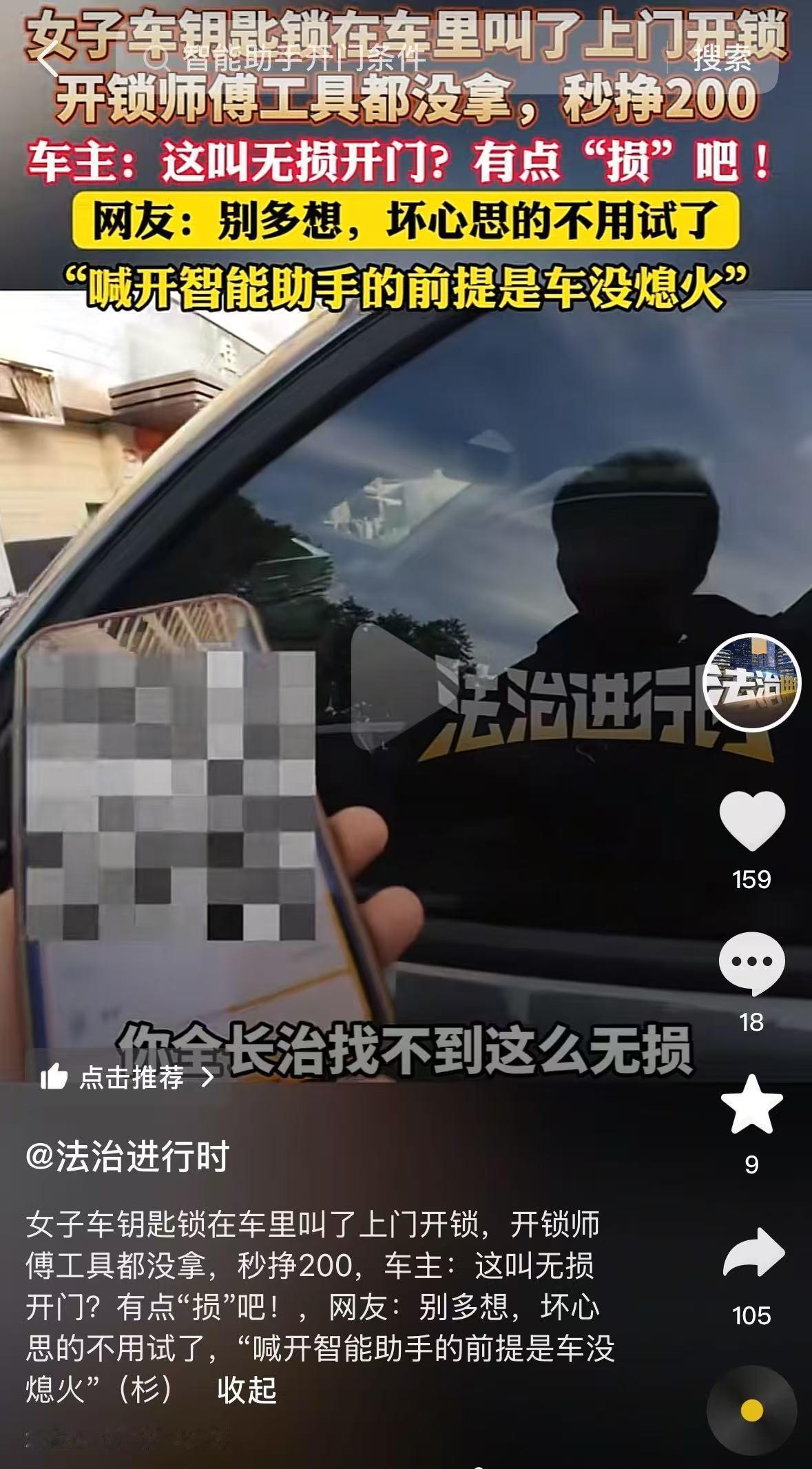山西长治,女子下车时随手关车门没拿钥匙,车门自动落锁。情急之下,她通过同城服务平台联系了一家开锁公司,客服明确报价200元“无损开锁”,并要求开锁前支付费用,承诺“15分钟上门,不损伤车辆”。   (来源:法治进行时)   不到20分钟,开锁师傅抵达现场。让该女子意外的是,师傅到达现场后问了女子开的车辆详细信息,钥匙在哪里落得,让女子扫码给钱后,师傅绕到车窗旁,对着车内喊了一声智能助手的唤醒词,随后发出“打开主驾驶车窗”的指令,车辆车窗应声降下,师傅伸手便取出了车钥匙,全程不过10秒。   “这就完了?这也太损了吧”女子又惊又气,她自己根本不知道车辆有语音控窗功能,师傅仅凭一句指令就解决问题,却收了200元“开锁费”。   女子认为这种“举手之劳”不值高价,但师傅反驳称“成功无损开锁就是完成服务,收费符合约定”,双方争执不下。女子疑惑:这种利用车辆自带功能的“开锁”,到底算不算合规服务?200元收费是否合理?   那么从法律的角度我们如何看待此次收费是否合理?   1. 《消费者权益保护法》第八条:消费者享有知悉其购买、使用的商品或者接受的服务的真实情况的权利。开锁公司未提前告知“可能通过车辆自带智能功能解锁”,隐瞒服务真实流程和难度,导致刘女士对服务价值产生重大误解,涉嫌侵犯消费者知情权。   2. 《价格法》第七条:经营者定价应当遵循公平、合法和诚实信用的原则。开锁服务虽属市场调节价,但收费需与服务成本、技术难度相匹配,师傅未付出实质性开锁劳动,仅利用消费者未知的车辆功能完成操作,收费明显超出合理范畴,违背公平交易原则。   3. 《最高人民法院关于预付式消费民事纠纷案件适用法律若干问题的解释》相关规定:消费者提前支付的200元属于预付式消费,若经营者提供的服务存在欺诈或明显不公,消费者有权请求解除合同并退还不合理费用。开锁公司以“无损开锁”名义收取高价,却未提供对应技术服务,消费者可主张退还差价。   4. 价格欺诈的认定依据:根据《明码标价和禁止价格欺诈规定》,经营者若利用消费者紧急需求和信息不对称,以误导性表述隐瞒服务真实情况,诱使消费者支付高价,可能构成价格欺诈。消费者可据此要求退还费用,若查证欺诈属实,还可依据《消费者权益保护法》第五十五条主张三倍惩罚性赔偿。   对此,你怎么看? 冬日生活打卡季