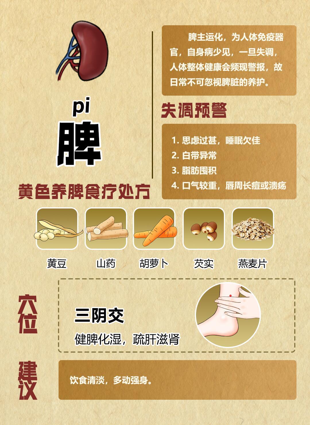 中医讲:五脏六腑养生❗五色养五脏养生攻略中医养生讲究五脏六腑的平衡,五色食物对应养护五脏,是老祖宗传下的智慧。心主血脉,红色食物如苹果、红枣能养心,内关穴按摩助气血调和,日常安歇充足护心康;肝主疏泄,青色的荞麦、菠菜可养肝,太冲穴疏肝理气,少熬夜、少生气让肝舒坦;脾主运化,黄色的山药、胡萝卜能养脾,三阴交健脾化湿,饮食清淡多动身脾才好;肺司气行,白色的梨子、百合可养肺,太渊穴调和气血,少抽烟多喝温水肺健康;肾主藏精,黑色的黑芝麻、黑豆能养肾,关元穴温肾散寒,少熬夜多喝温水护肾强。看懂身体的求救信号,跟着五色食疗、穴位按摩和养生建议调理,让五脏安和,身体倍儿棒。