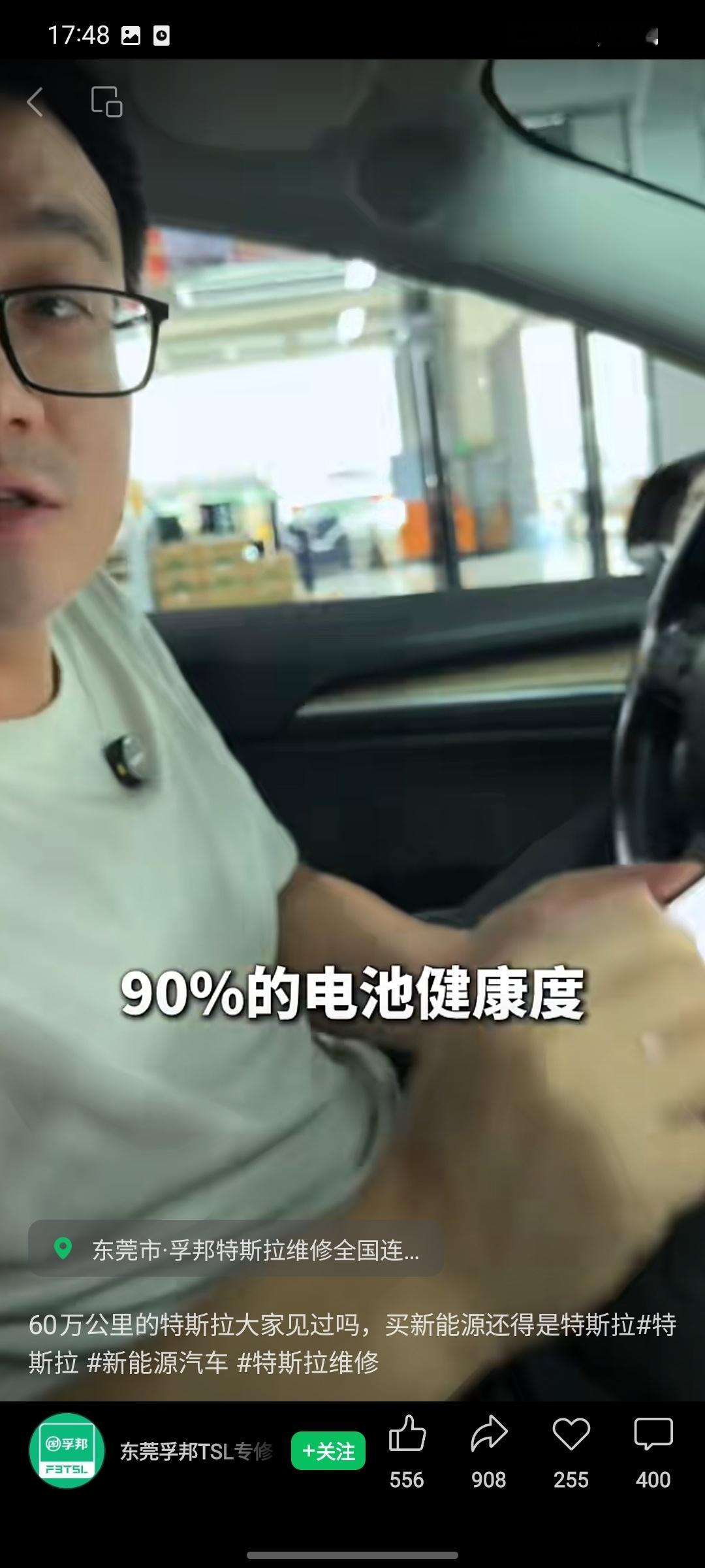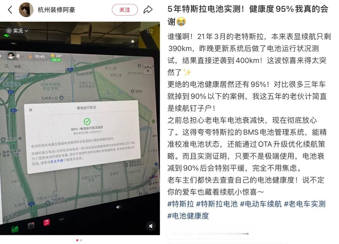 一辆行驶里程近60万公里的特斯拉,电池健康度仍保持在90%,展现出强大的耐久性。