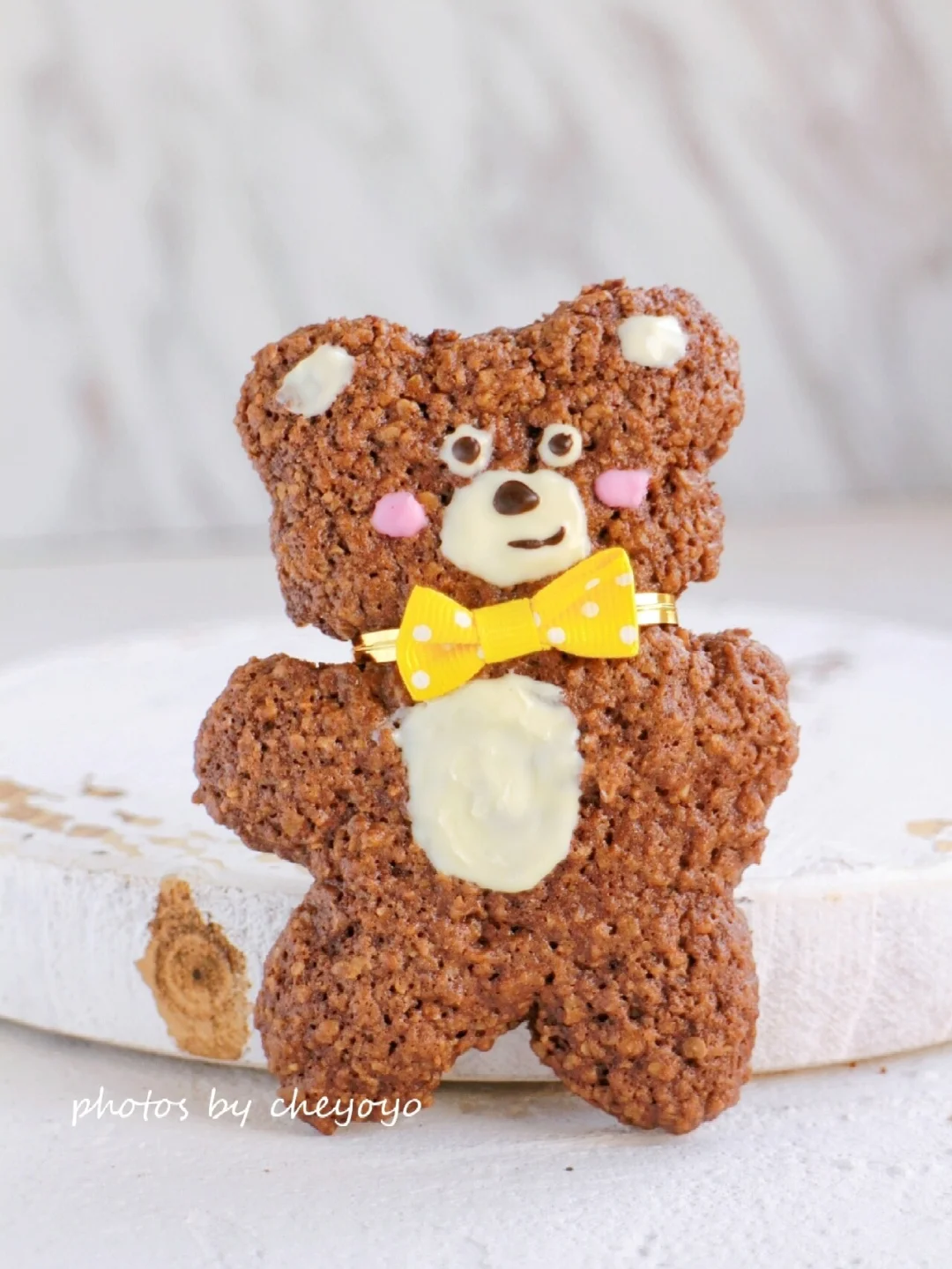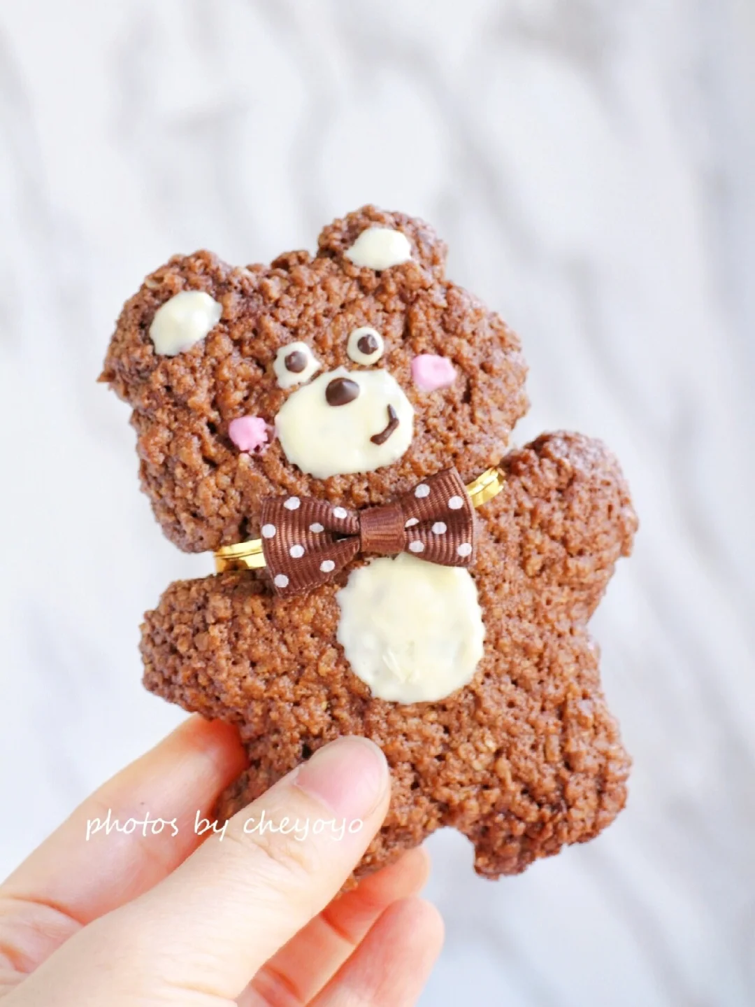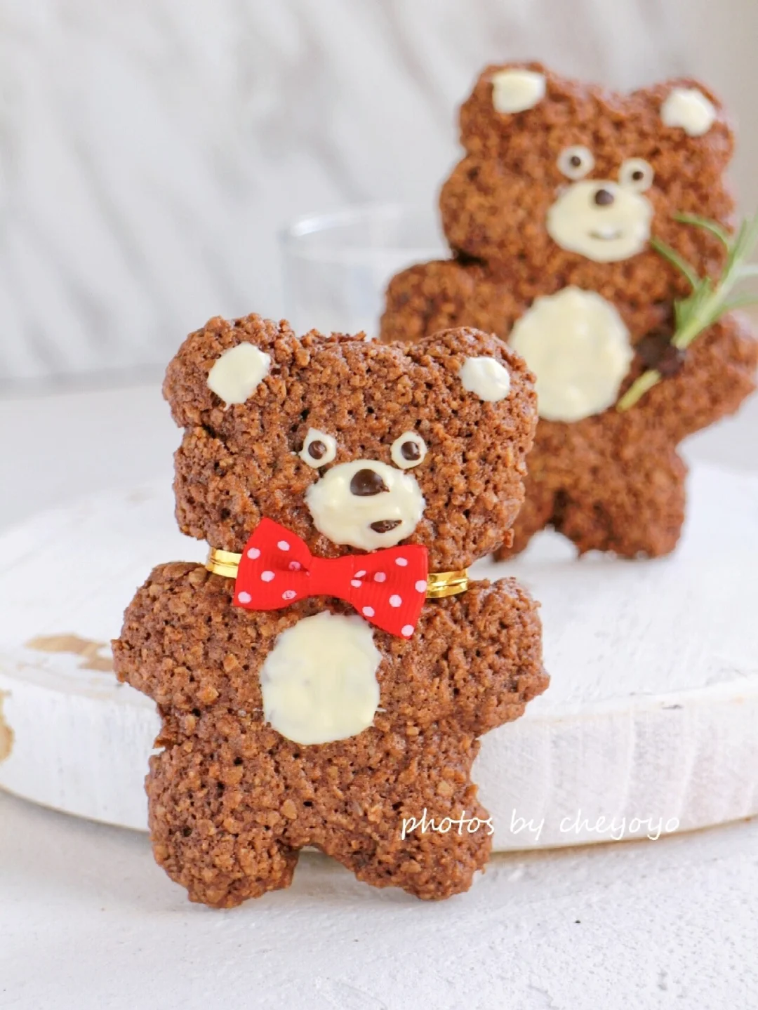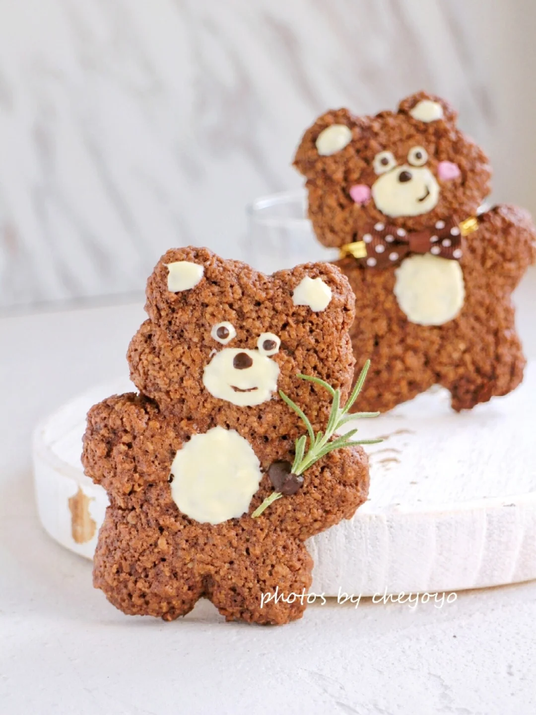 ⑥ 取出放在烤网上凉凉,巧克力隔水融化,在小熊上画出耳朵、眼睛、口鼻、肚皮就可以啦,enjoy~🐻🌿