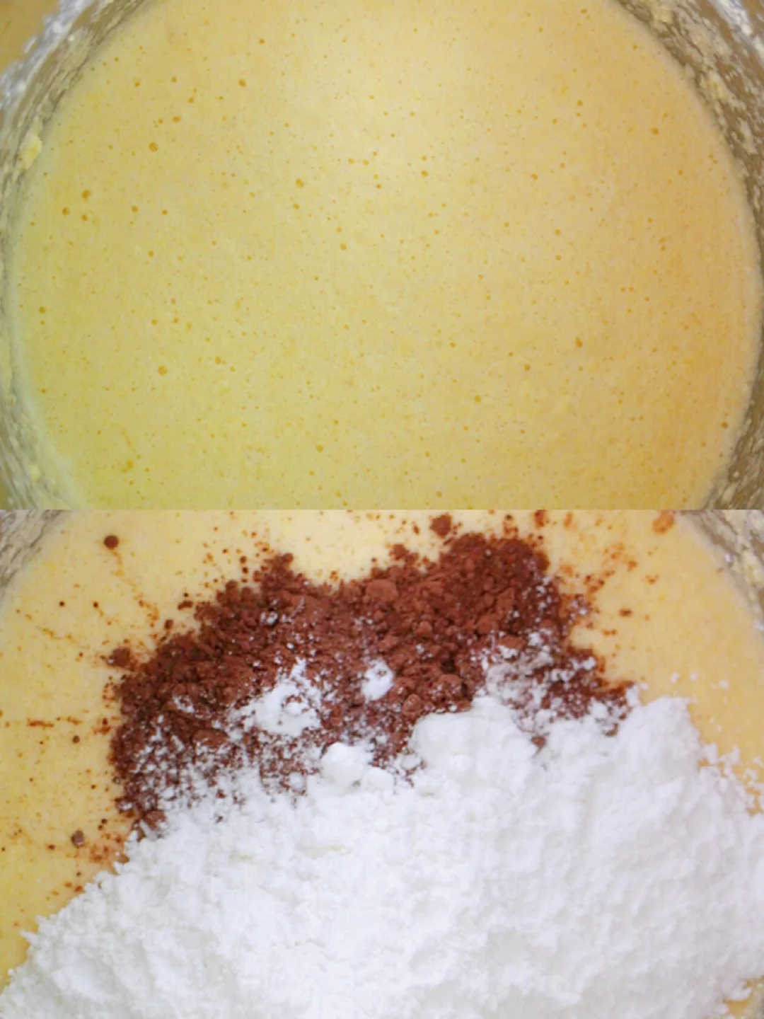 ② 鸡蛋打散搅匀,分三次倒入黄油中,每次都要充分打发;