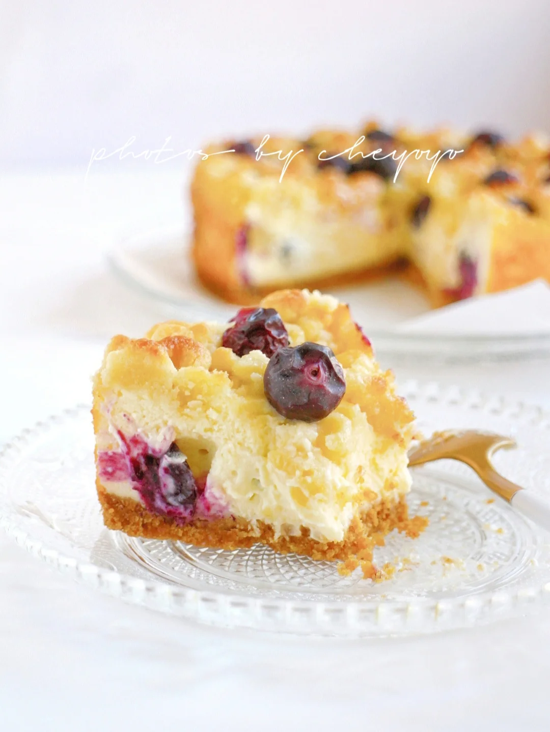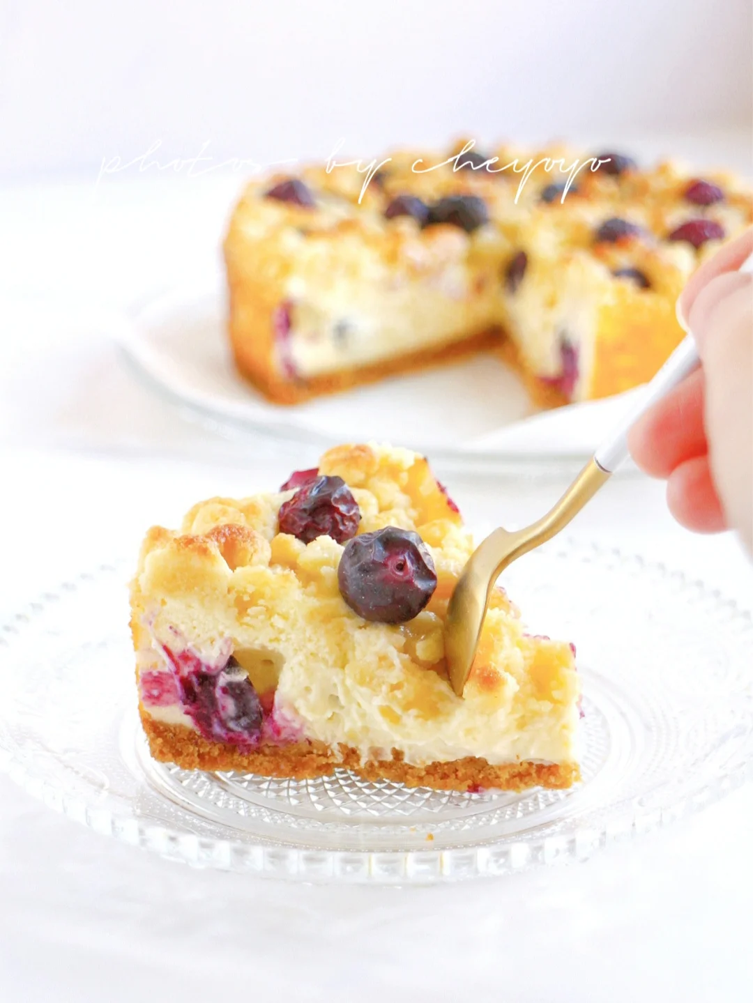 让人赞不绝口的爆浆蓝莓芝士蛋糕!把金黄酥脆的酥顶、酸甜爆浆的蓝莓、浓郁醇香的芝士一起送进烤箱,层次丰富,味道惊艳!做法简单,不用打发~[得意R]