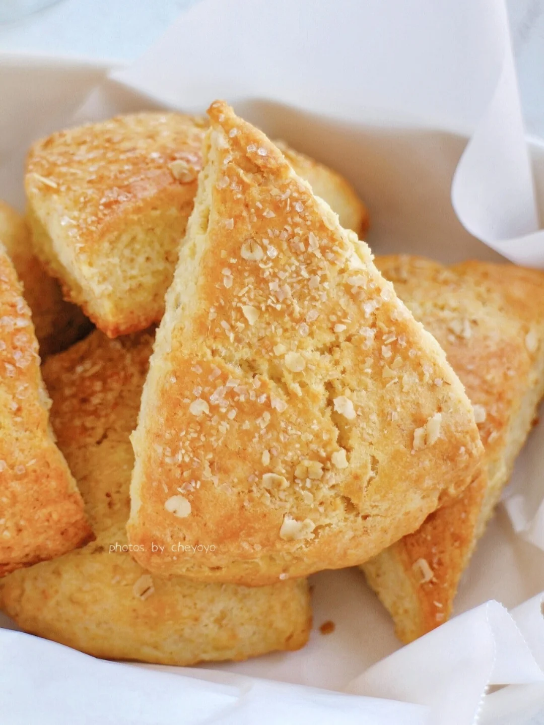 加了奶油奶酪的司康真是太好吃了!奶酪和燕麦混合在一起,奶香浓郁,外酥里软,让人爱得一发不可收拾。配上一杯牛奶,就是一个美好的早餐。做法简单,新手也能0失误~[害羞R]