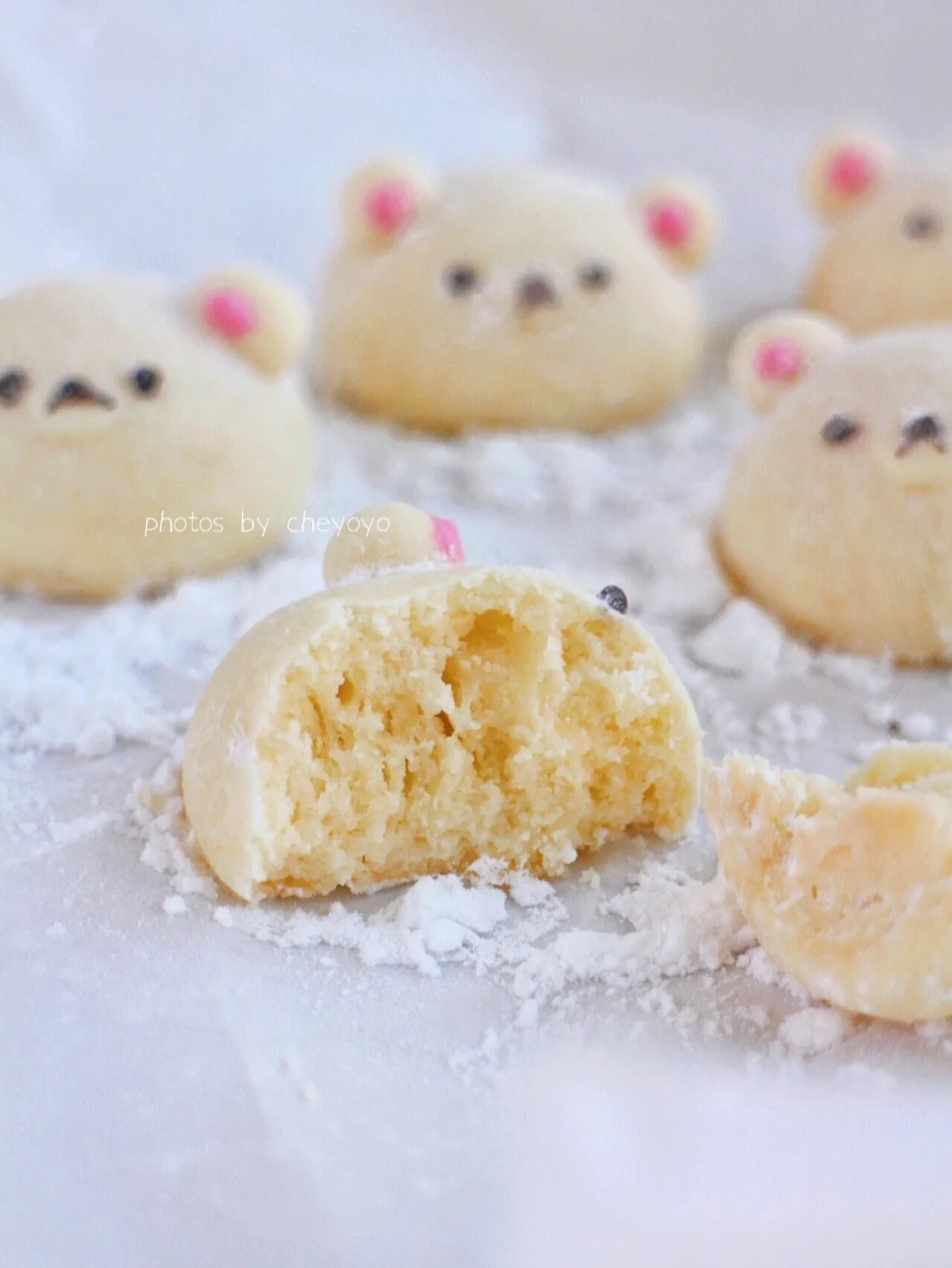 圆滚滚、白胖胖的雪球饼干,入口就像雪一般融化,好吃到飞起!做成轻松熊的造型,又添了一份可爱!做法真的超级简单,新手也能轻松搞定~✨[派对R]