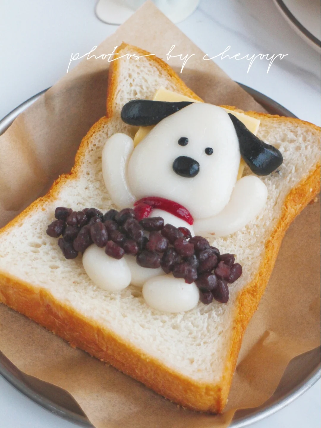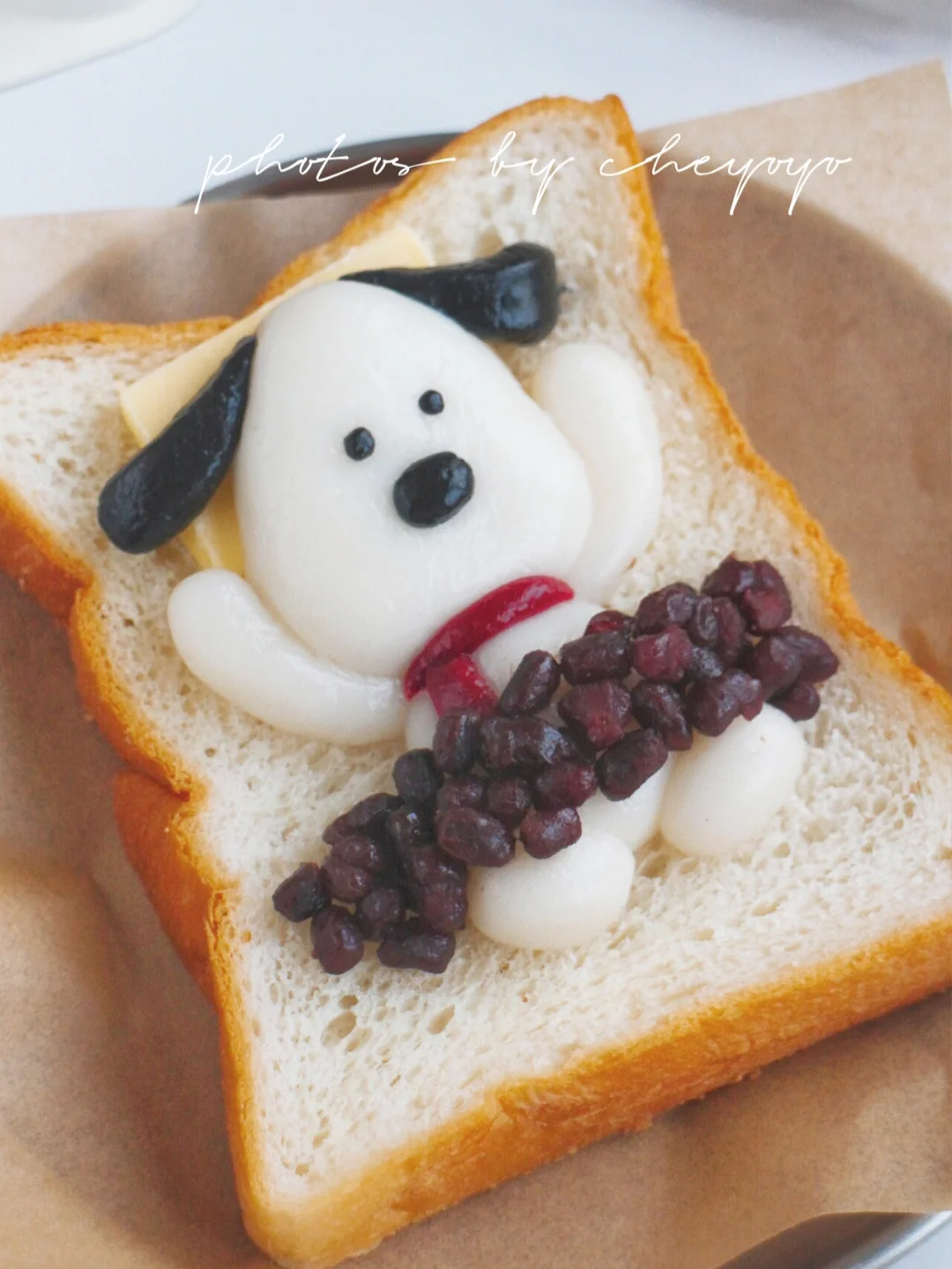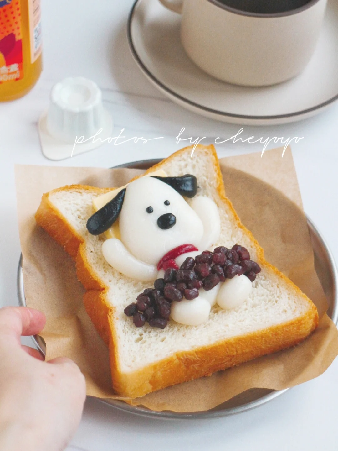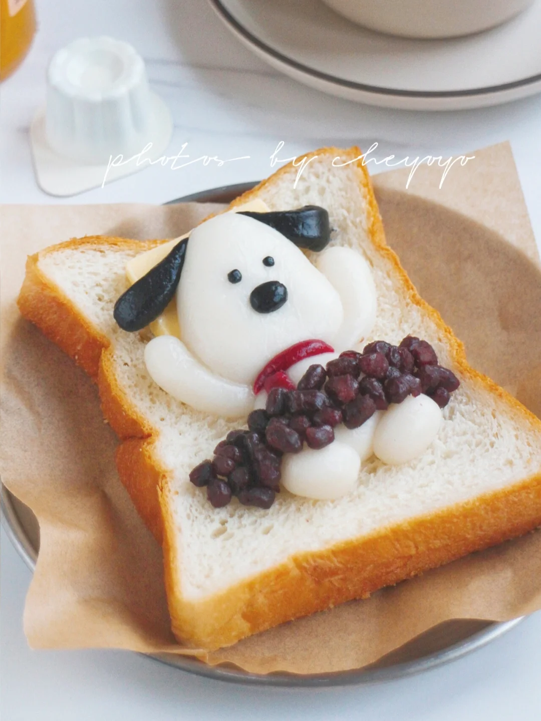 今天又是糯叽叽的糯米丸子!一口下去香甜软糯,Q弹有嚼劲!做成赖床的史努比造型,再配上黄油土司和蜜红豆,可爱又好吃 ❤️