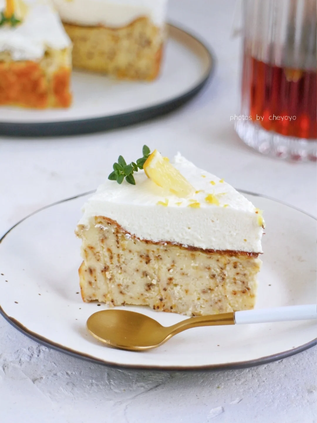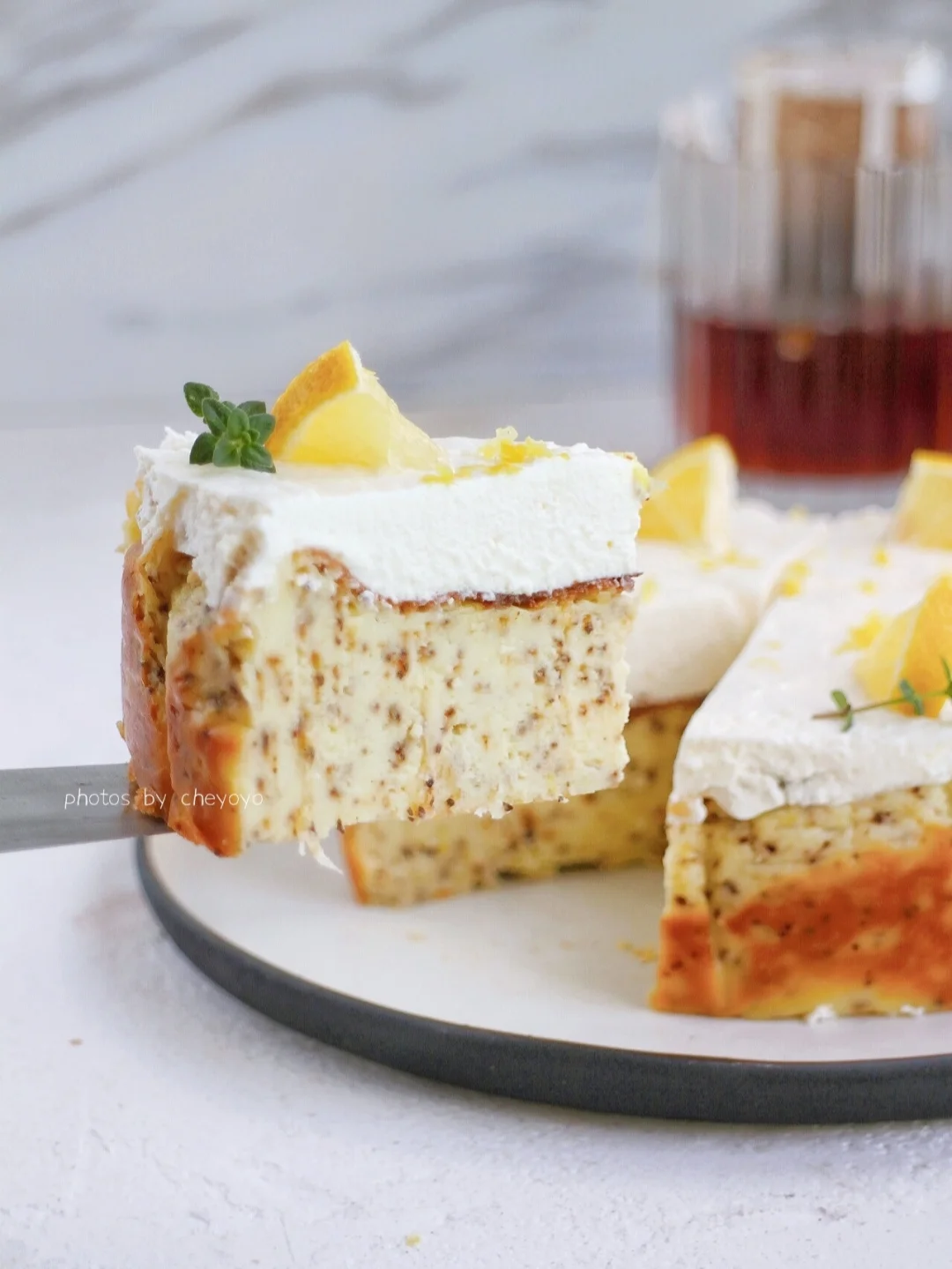 冷藏后的柠檬红茶巴斯克,散发着淡淡的柠檬清香和茶香,冰冰凉凉,清新不甜腻~[飞吻R][飞吻R]