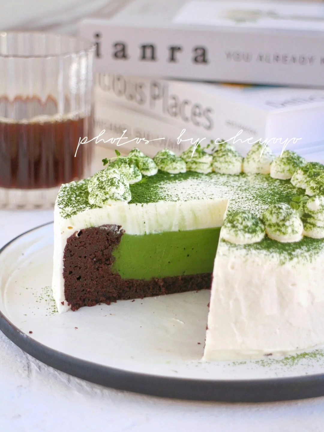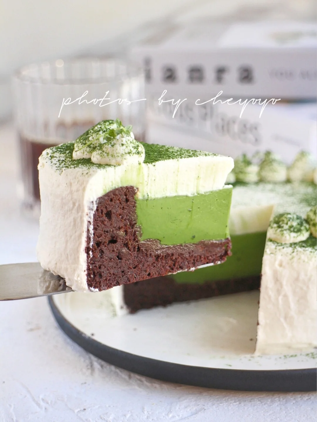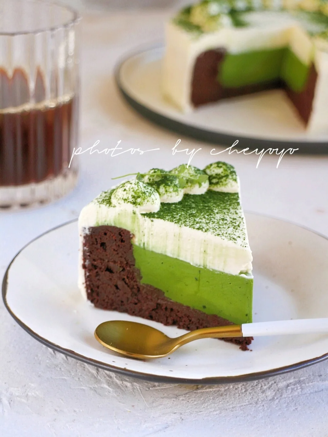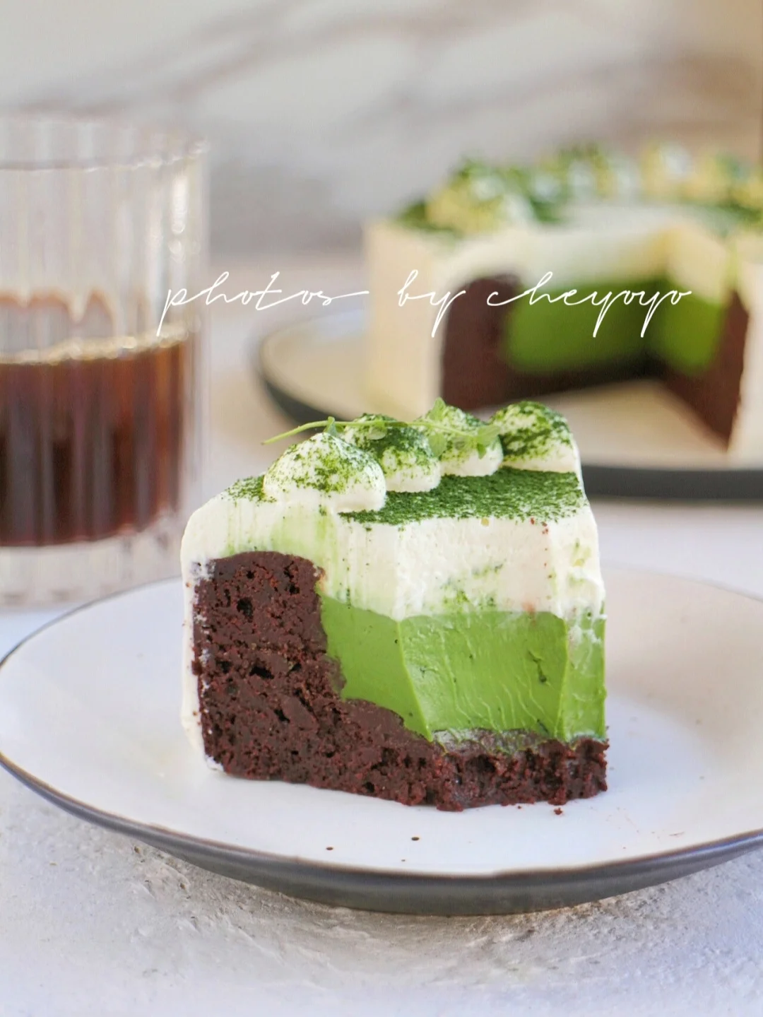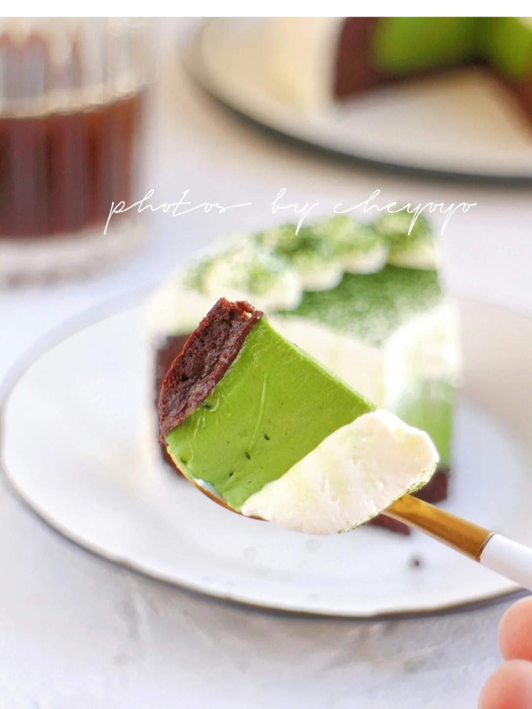 超级好吃的巧克力抹茶凝乳蛋糕!浓郁的巧克力蛋糕、入口即化的抹茶凝乳、细腻香甜的奶油,一勺下去三重美味,每一口都惊艳[赞R][赞R]