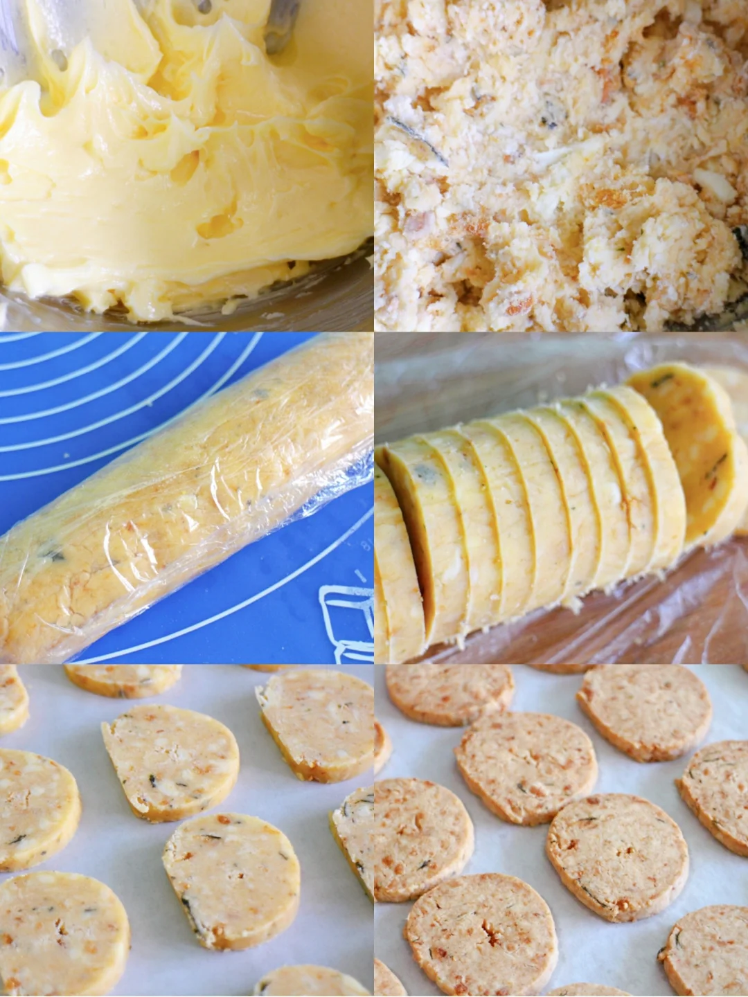 加了马苏里拉芝士和海苔肉松的曲奇饼干,真是让人难以抵挡的美味。咸香,酥脆,每吃一口都是满足[色色R] - 🔹食材🔹 黄油……73g 糖粉……20g 蛋黄……1个 低粉……103g 马苏里拉芝士……20g 海苔肉松……27g 盐……1撮 - 🔹做法🔹 ① 黄油室温软化,加糖粉打发至蓬松发白; ② 加蛋黄搅拌均匀; ③ 放入低粉、芝士、海苔肉松、盐,翻拌均匀; ④ 整理成圆柱,放入冰箱冷冻一小时; ⑤ 取出切片,入150度烤箱烘烤25-30分钟即可。