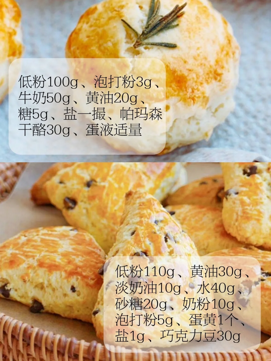 司康不仅外酥里软,好吃胞腹,而且做法简单,所有材料混匀送进烤箱就可以了。用来做早餐和下午茶都可以,满足胃又满足成就感~👌