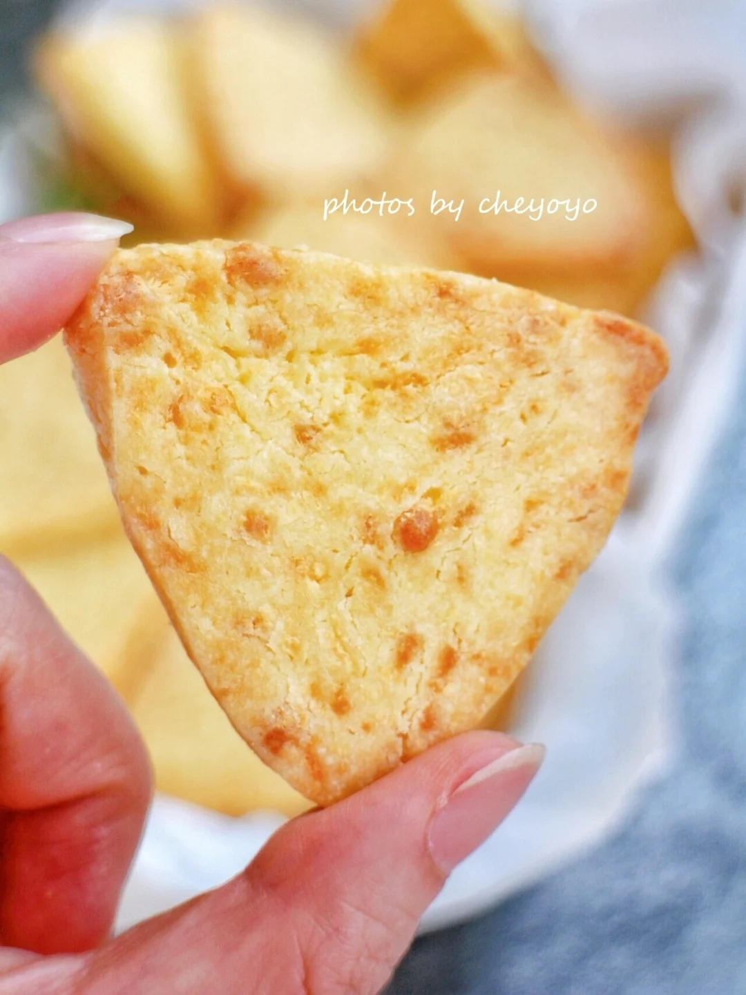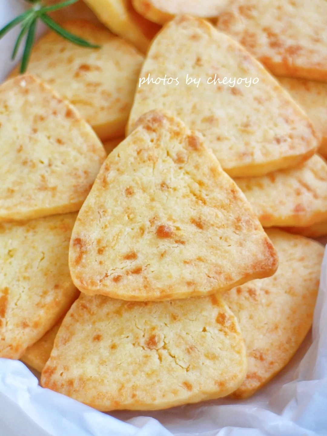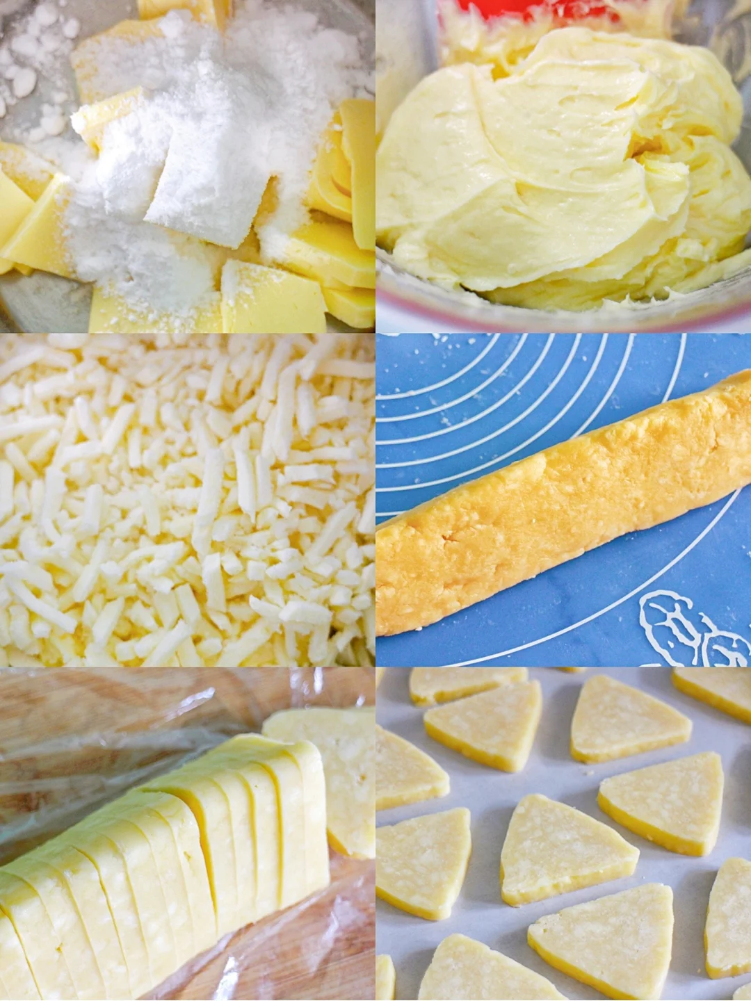 将马苏里拉芝士和咸蛋黄酱融入饼干中,轻咸风味、口口酥脆、芝香浓郁,好吃到停不下来[色色R] - 🔹食材🔹 低粉……135g 糖粉……40g 黄油……70g 全蛋液……15g 咸蛋黄酱……15g 马苏里拉芝士……80g - 🔹做法🔹 ① 黄油提前软化,加糖粉打发至蓬松发白; ② 加入全蛋液、蛋黄酱,搅拌均匀; ③ 放入马苏里拉芝士,翻拌均匀; ④ 筛入低粉,翻拌均匀后整理成三角形,放入冰箱冷冻一小时; ⑤ 取出切片,入160度烤箱烘烤25-30分钟即可。