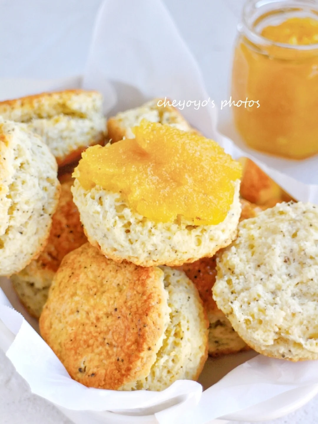 🔹这个今天这款司康里加了伯爵红茶,烘烤的时候就已经茶香四溢。沿中间裂缝轻轻掰成两半,抹上果酱,一口下去回味无穷。配上一杯咖啡,就是一场甜蜜的下午茶~❤️