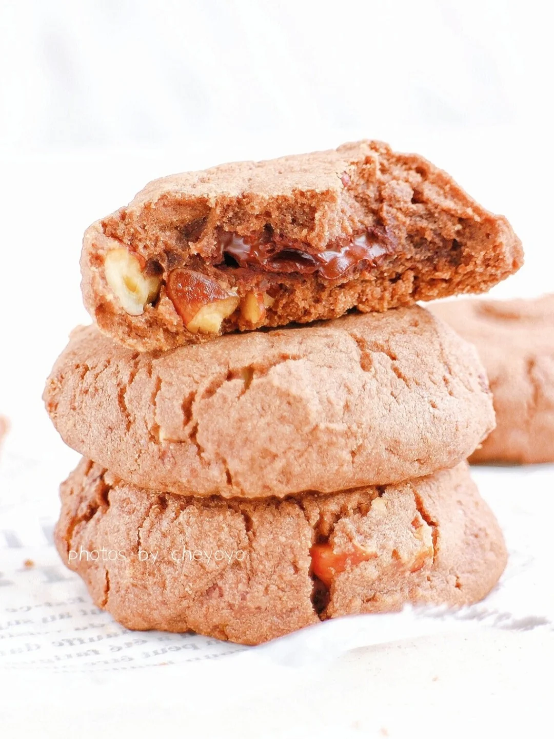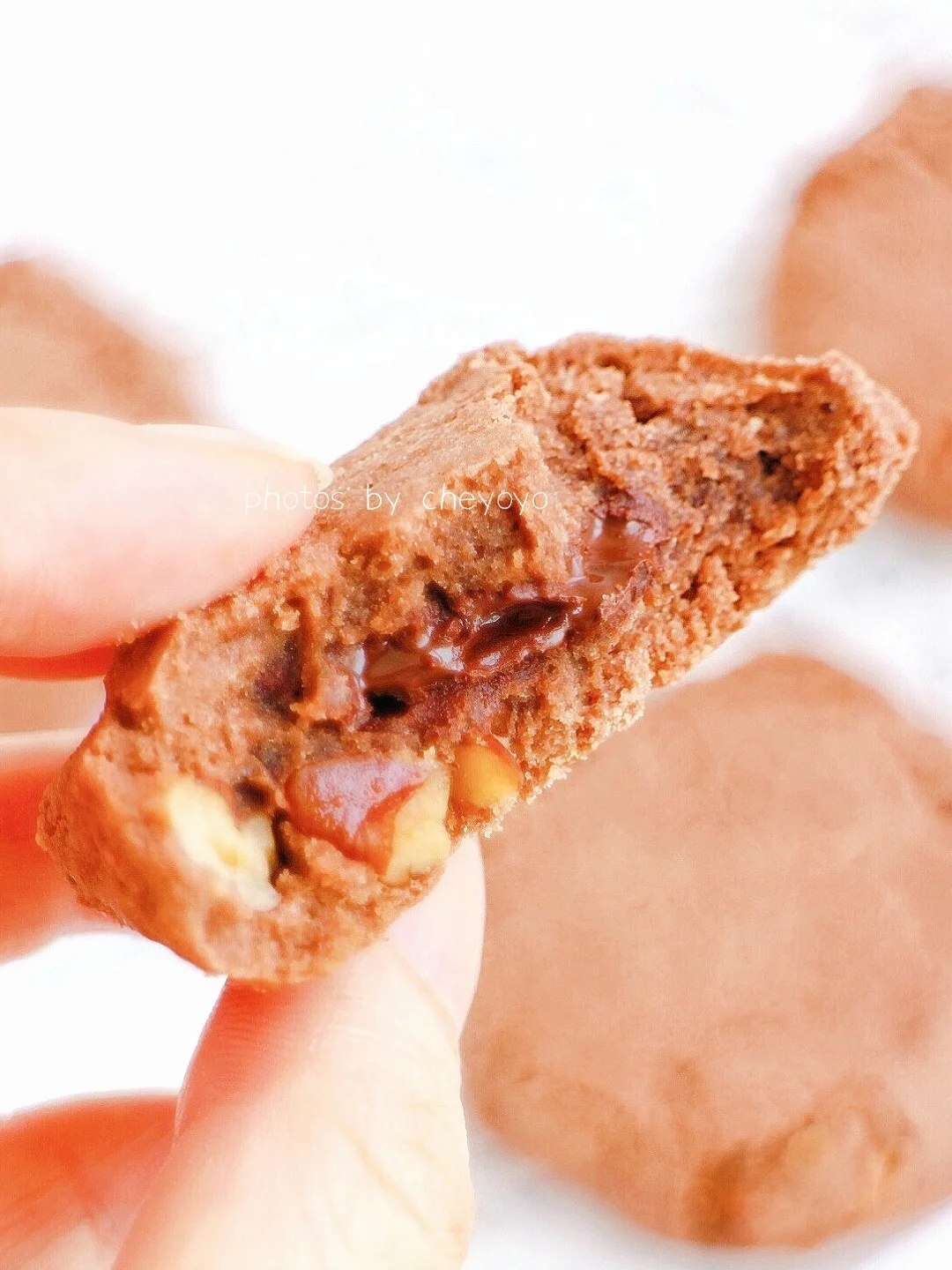 巧克力和坚果真是绝配,再加上些许海盐,口味真是令人欢喜。做了10块曲奇饼干,出炉就吃了6块。外酥里软,一口爆浆流心,好吃停不下[哇R]