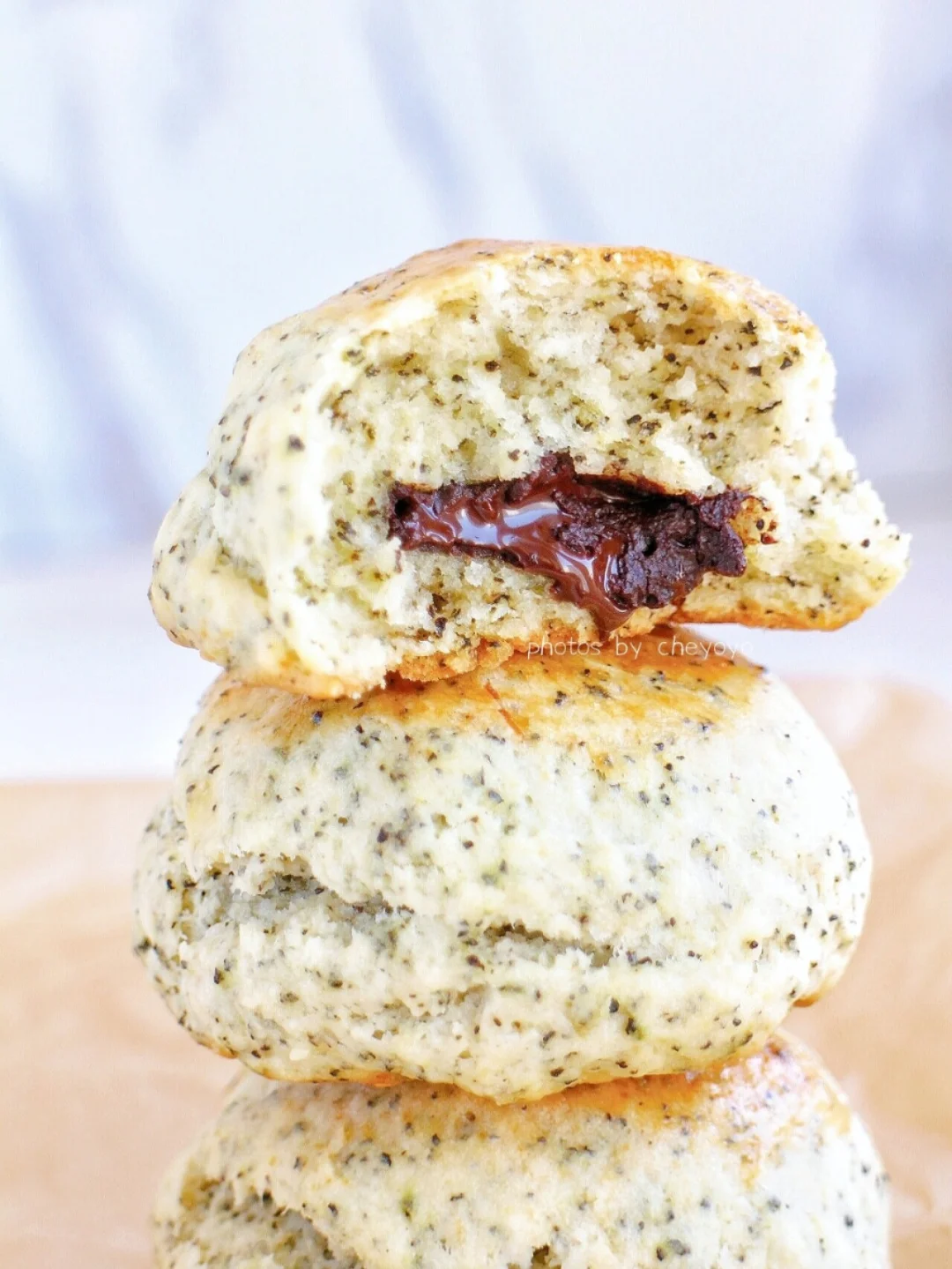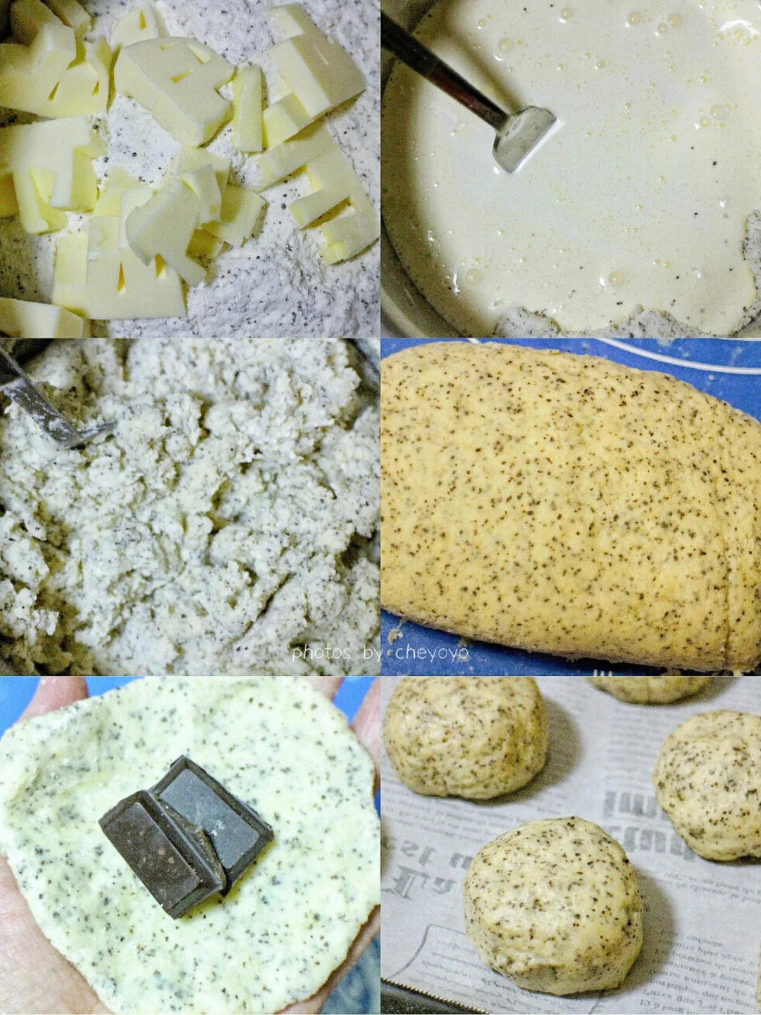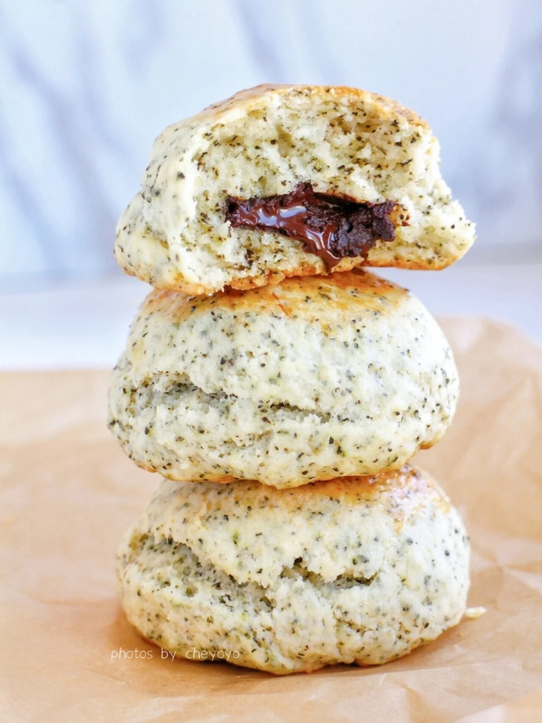 分享一个超级好吃的司康小炸弹!外酥内软,干中带湿,入口是淡淡茶香和黄油香,中间还有爆浆流心的巧克力,微甜不腻,好吃到炸!做法简单,快手司康本康~[偷笑R][偷笑R]