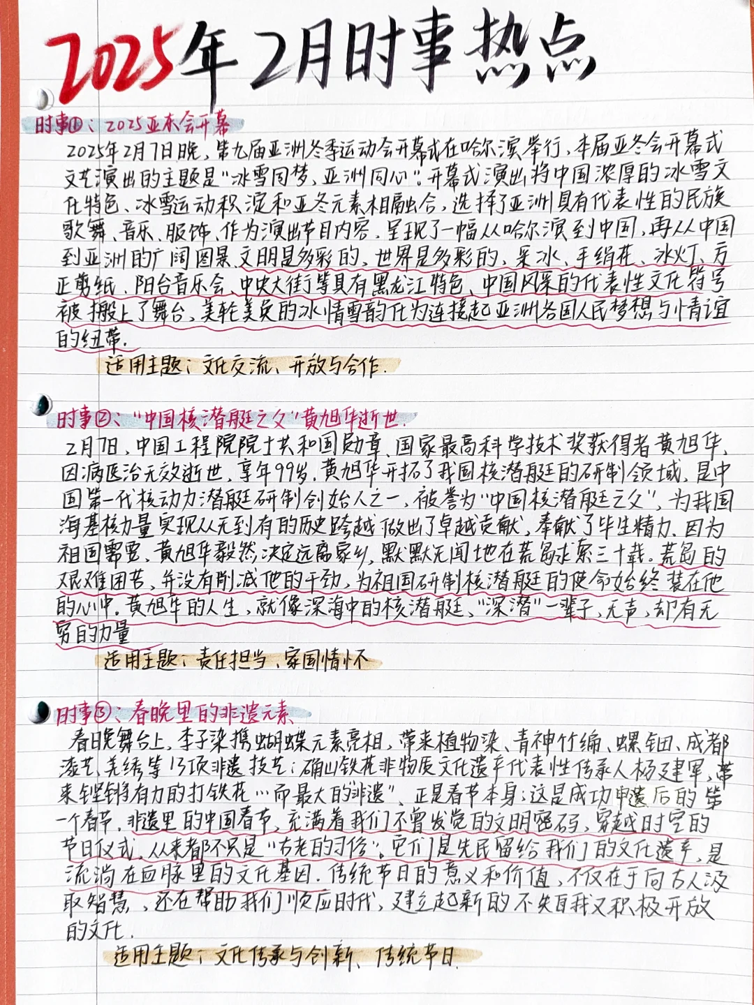 ✅时事①:2025年亚东会开幕 ✅时事②:“中国核潜艇之父”黄旭华逝世 ✅时事③:春晚里的非遗元素