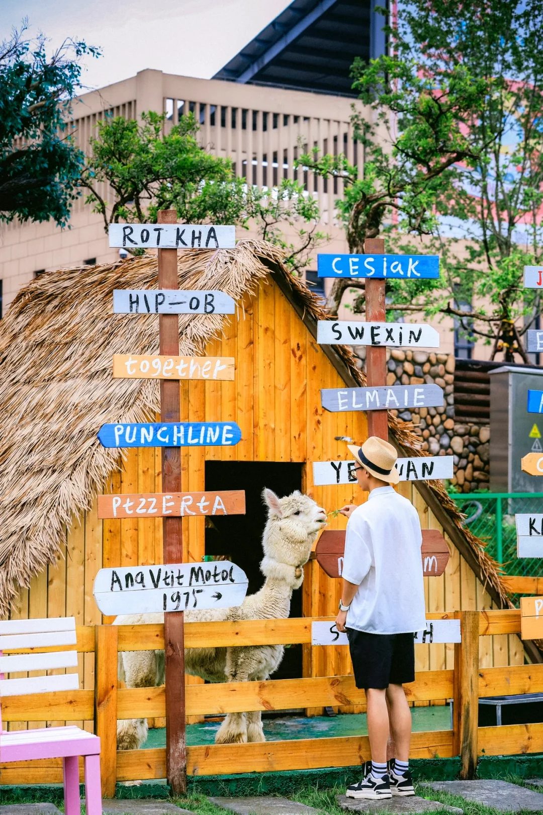 5️⃣高山草原旁边的羊驼🦙小屋🛖:可爱的羊驼🦙加上有趣的路牌和木屋,和羊驼互动📷也超级有趣