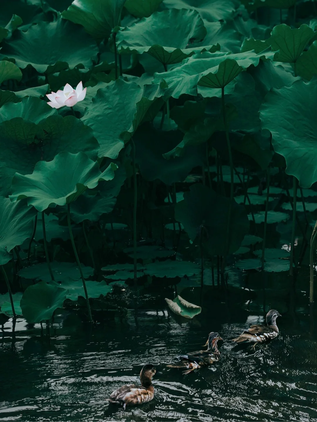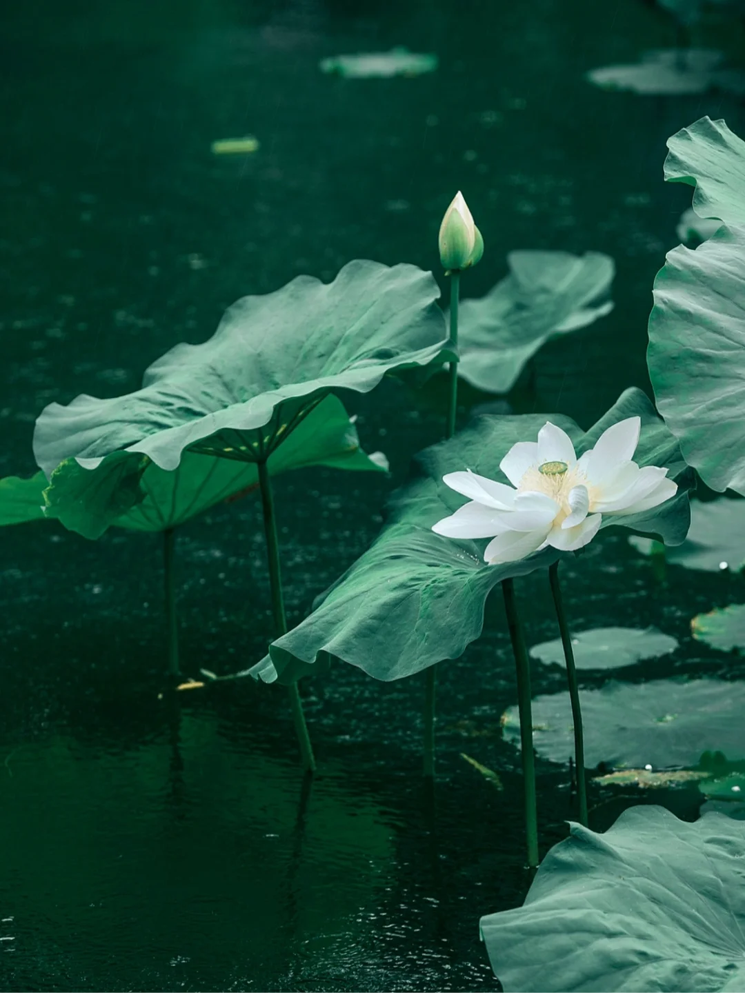 雾雨朦胧,满池的荷好似刚完成的水墨丹青