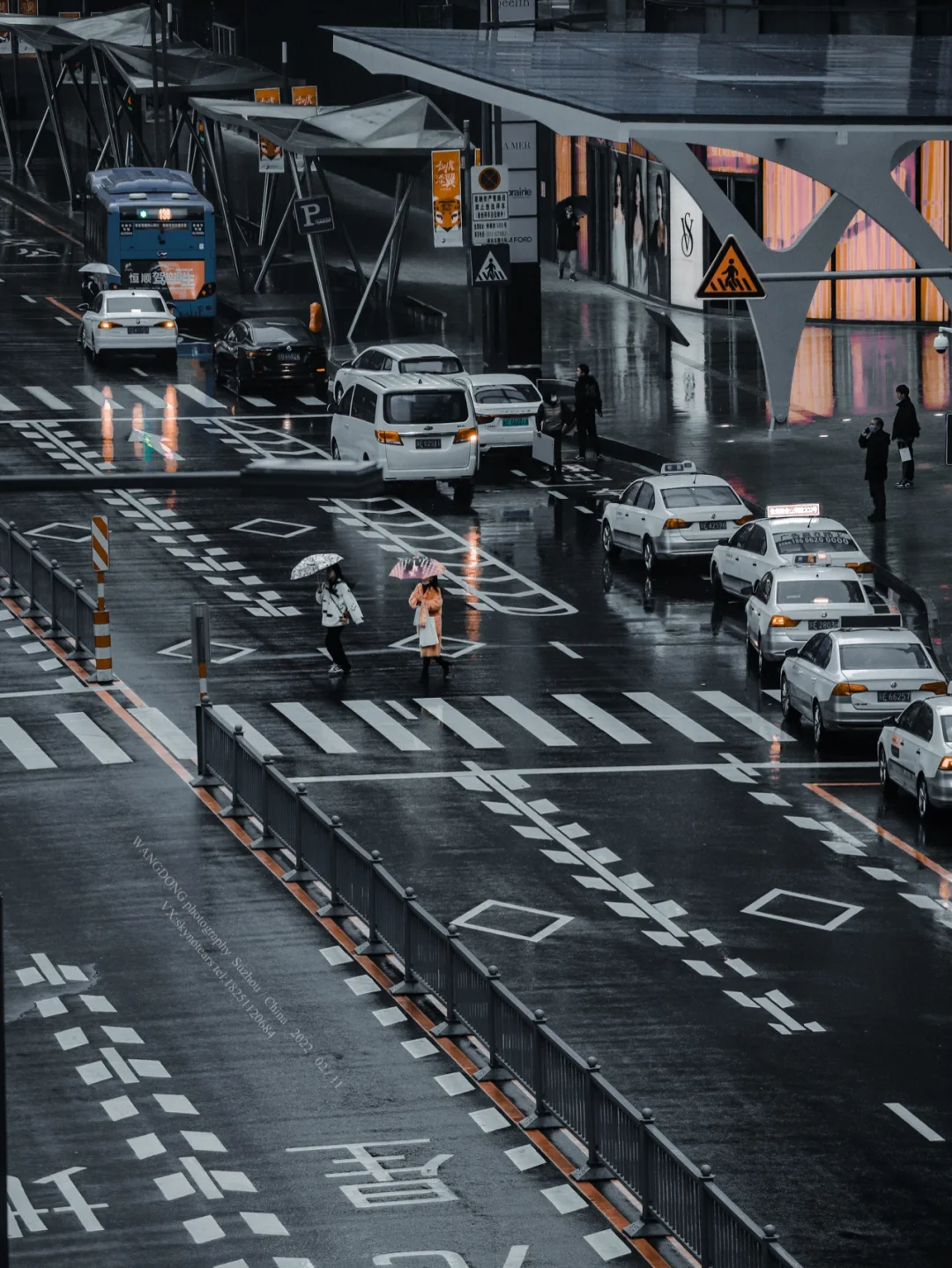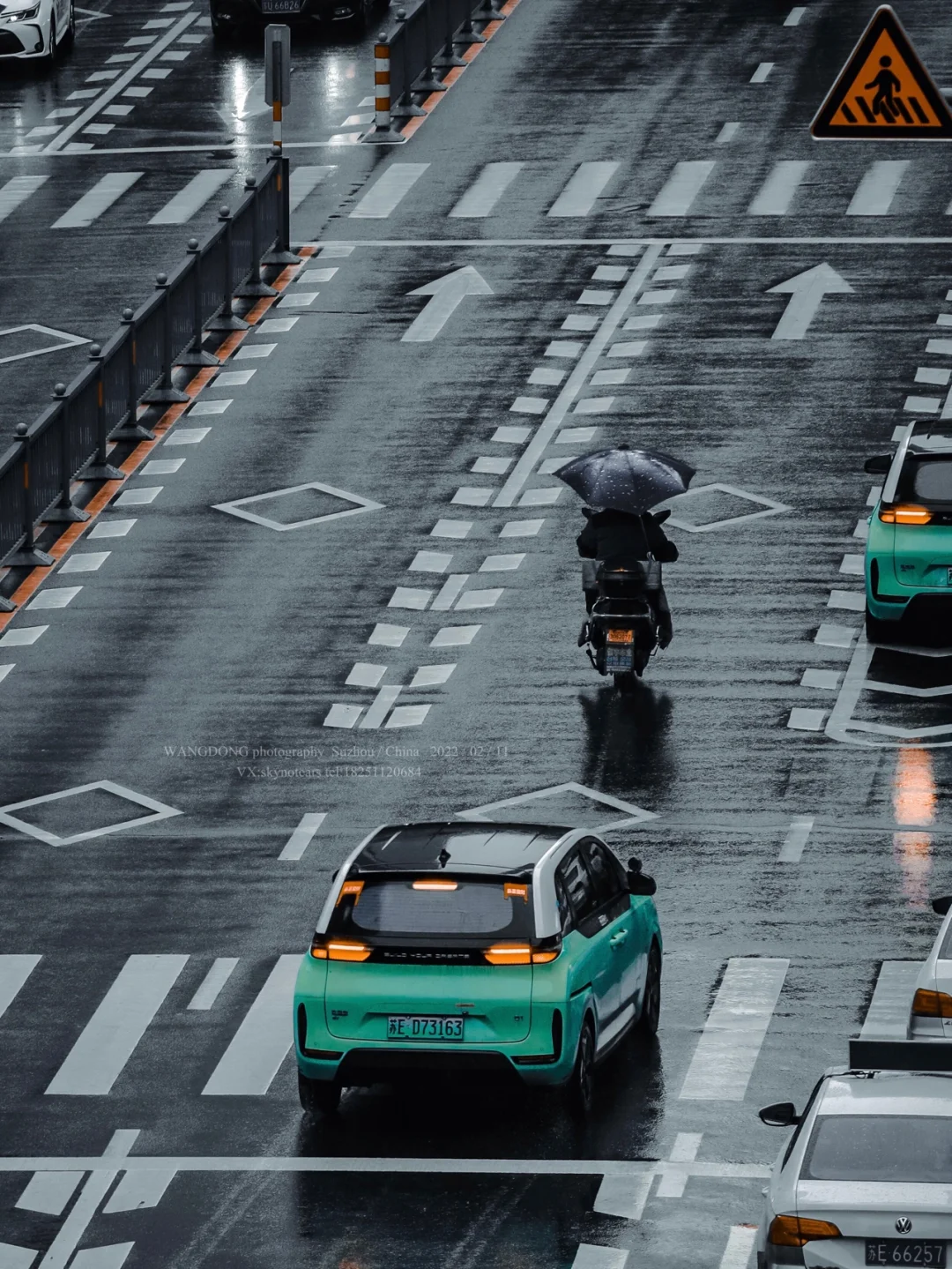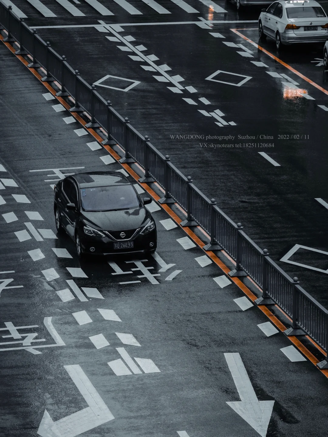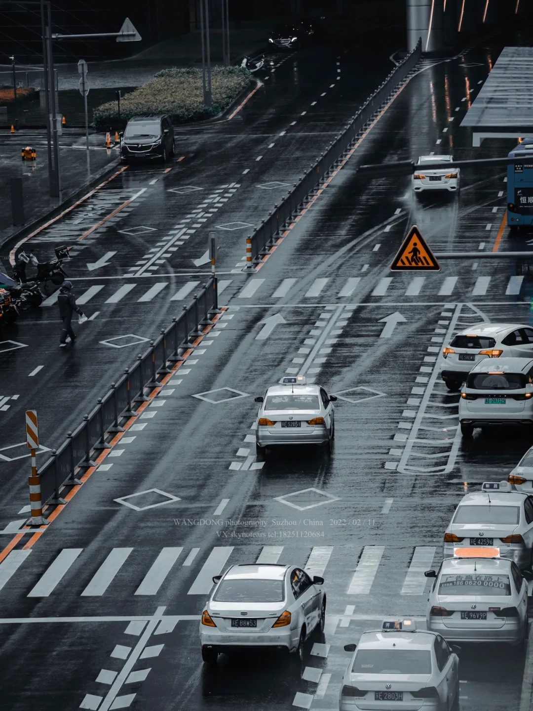 下雨天的苏州, 除了烟雨江南的柔美~ 苏州中心外的马路则展现出另一种不一样的魅力~