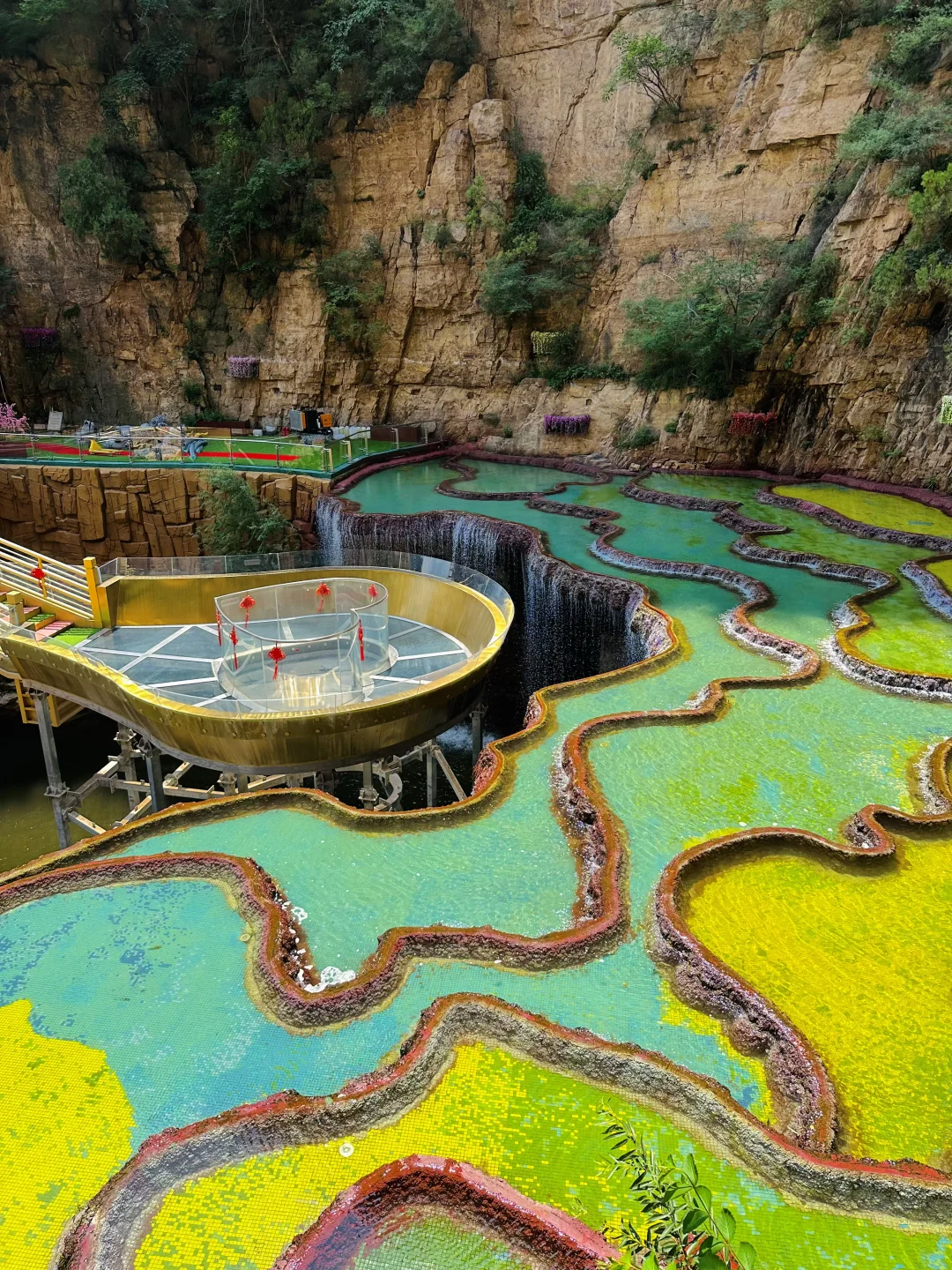 夏日避暑,秋日登高。这里的人工七彩池非常出片,喜欢爬山可以一路爬到玻璃栈道,体力一般也能选择坐缆车游玩