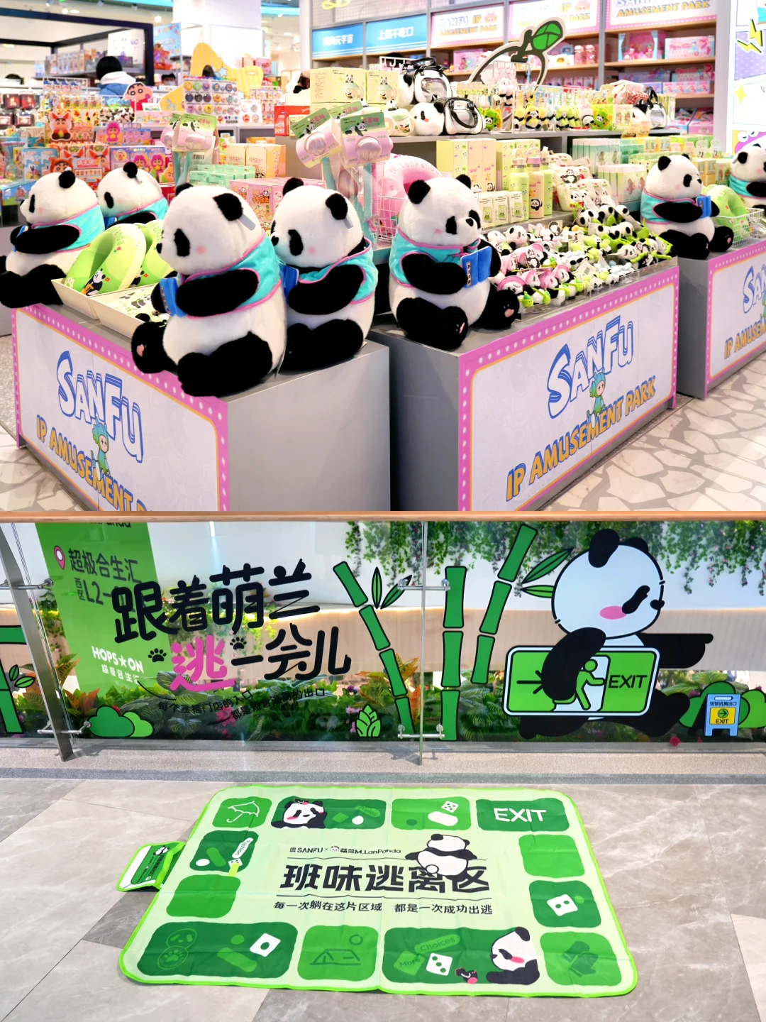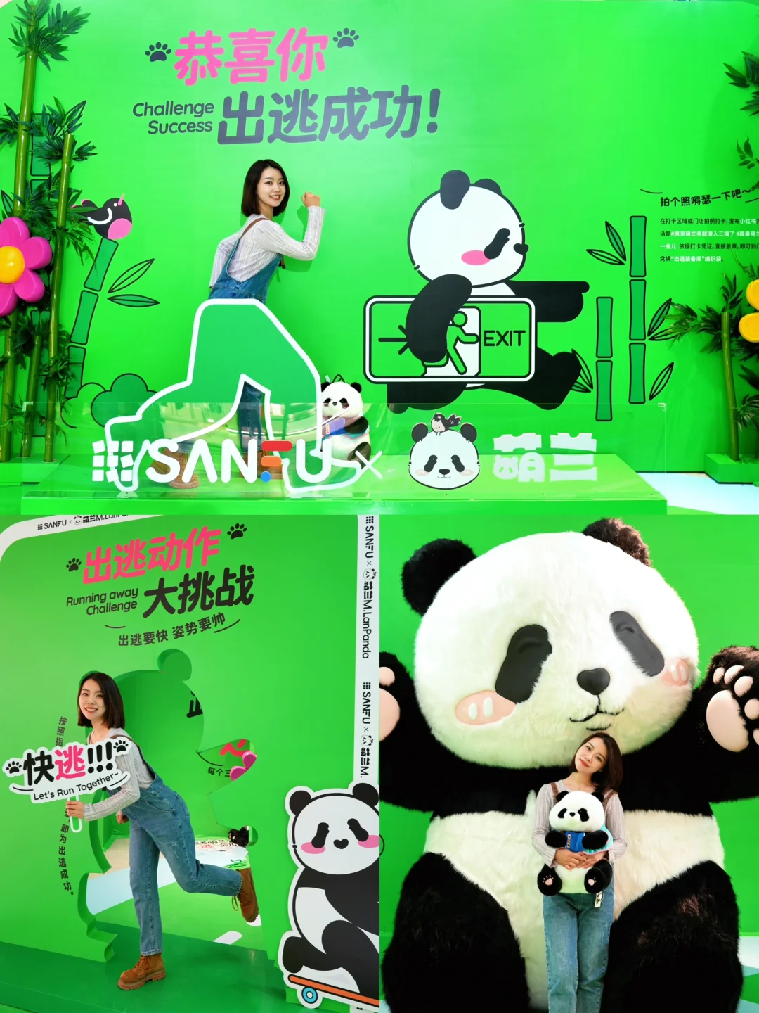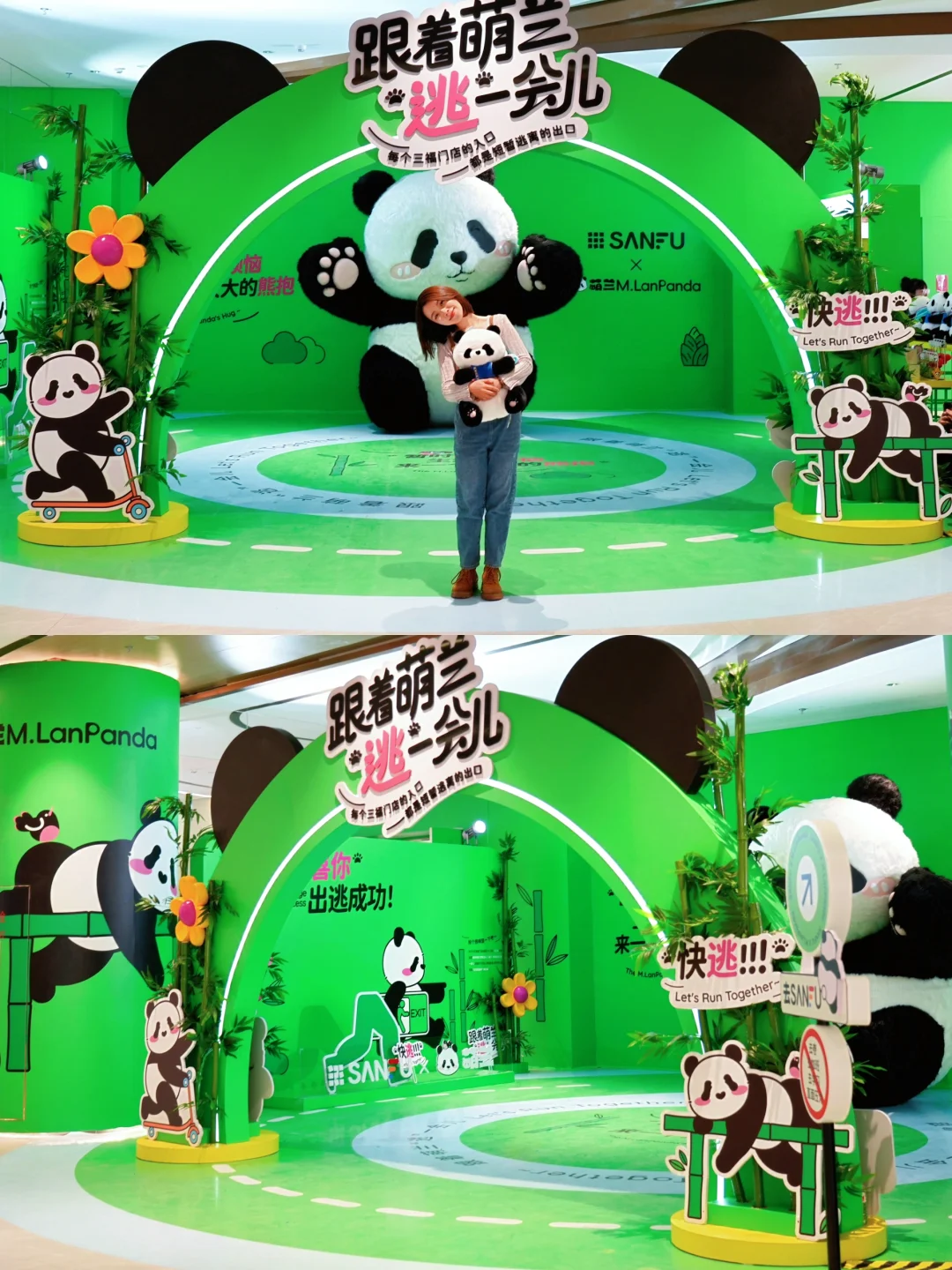 Hi~我是探索好地方的周五晚和同事来逛合生汇 看到了三太子大型出逃现场‼️ . 萌兰正传递着一生爱自由的精神力量 参与一场出逃迷宫挑战🎲 不仅成功的去除了班味儿 还在三🧧福领到了野餐垫 / 显眼包‼️ . 🐼🐼🐼 “每个三🧧福门店的入口都是短暂逃离的出口” 进去逛一逛,收集些可可爱爱的熊猫周边 下次累了乏了,就来三🧧福“逃一会儿”