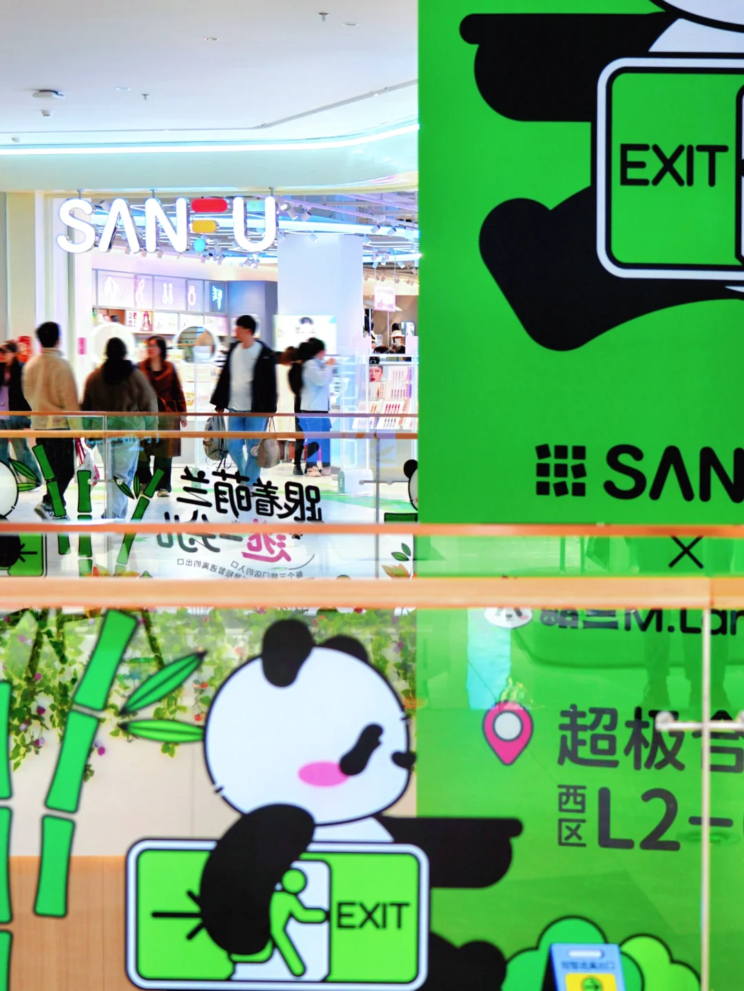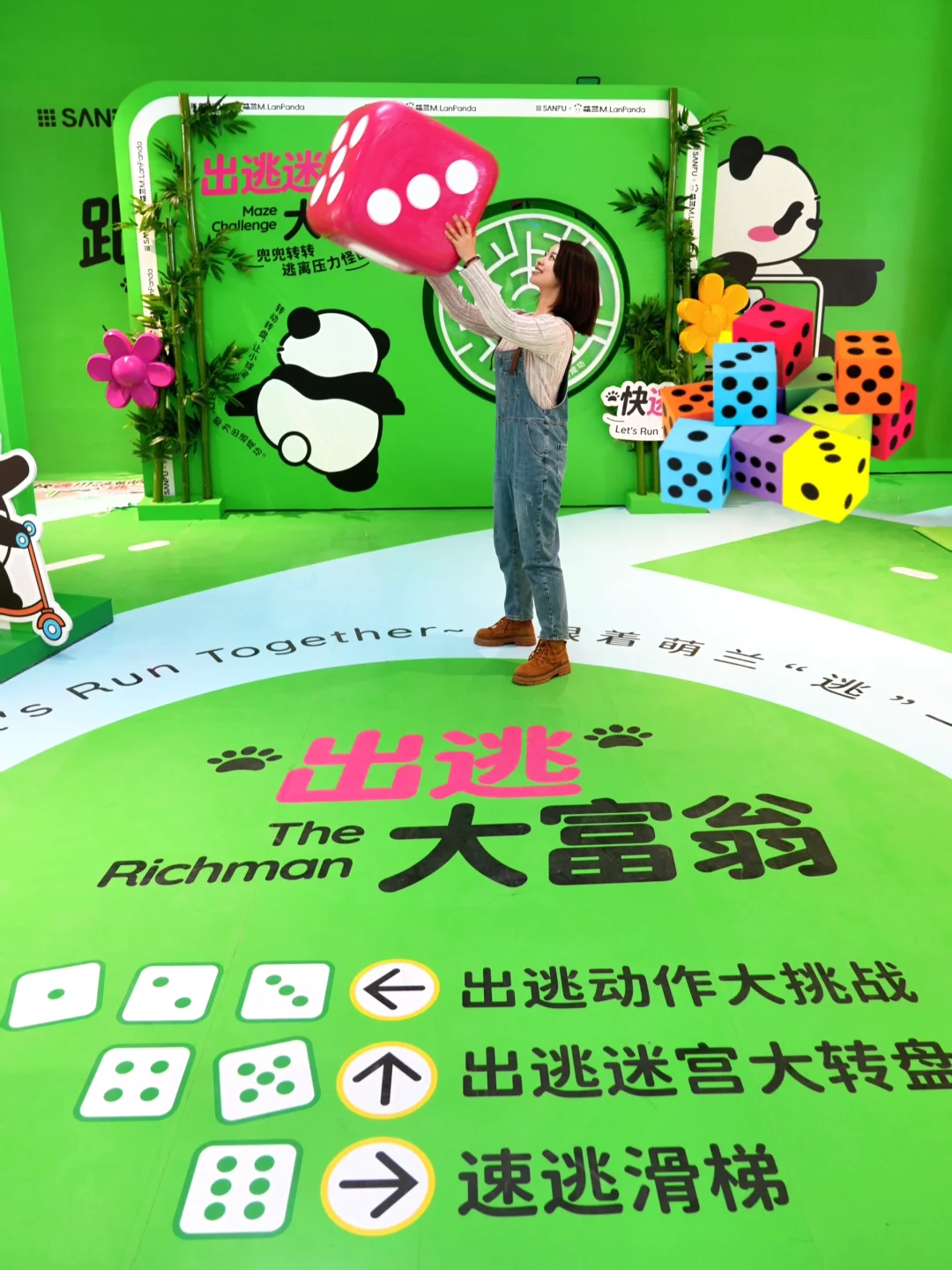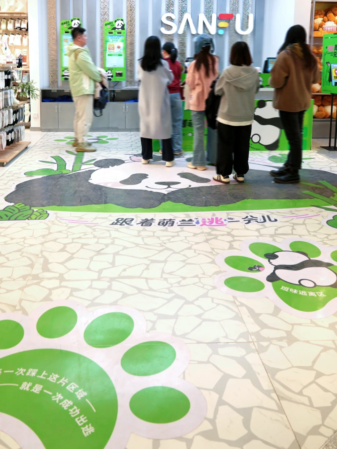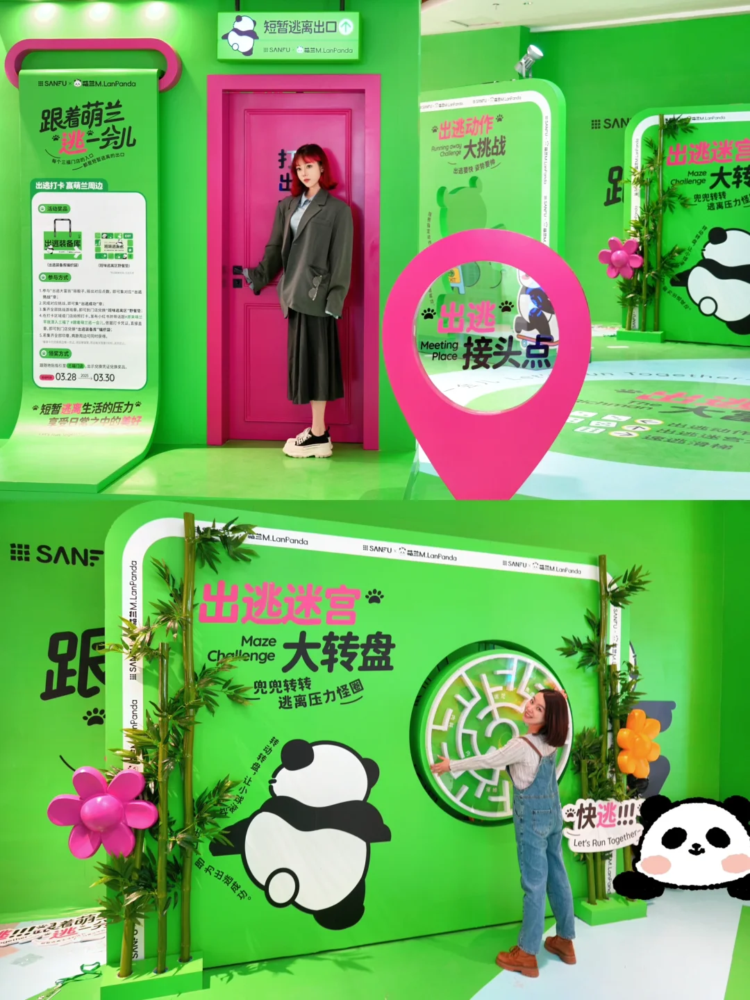 Hi~我是探索好地方的周五晚和同事来逛合生汇 看到了三太子大型出逃现场‼️ . 萌兰正传递着一生爱自由的精神力量 参与一场出逃迷宫挑战🎲 不仅成功的去除了班味儿 还在三🧧福领到了野餐垫 / 显眼包‼️ . 🐼🐼🐼 “每个三🧧福门店的入口都是短暂逃离的出口” 进去逛一逛,收集些可可爱爱的熊猫周边 下次累了乏了,就来三🧧福“逃一会儿”