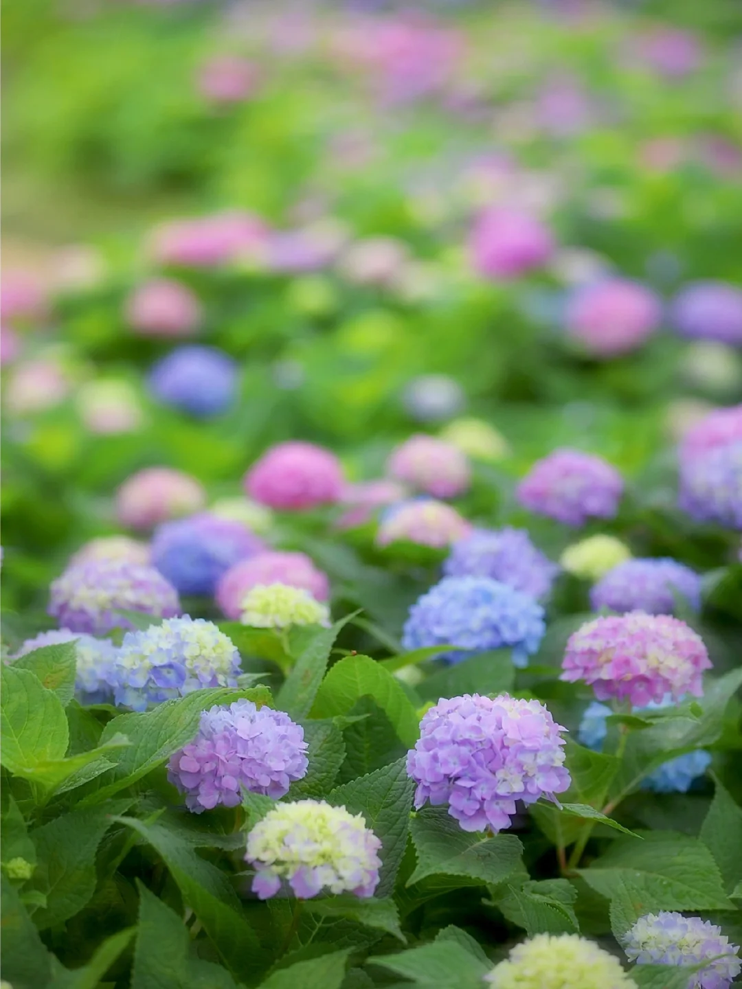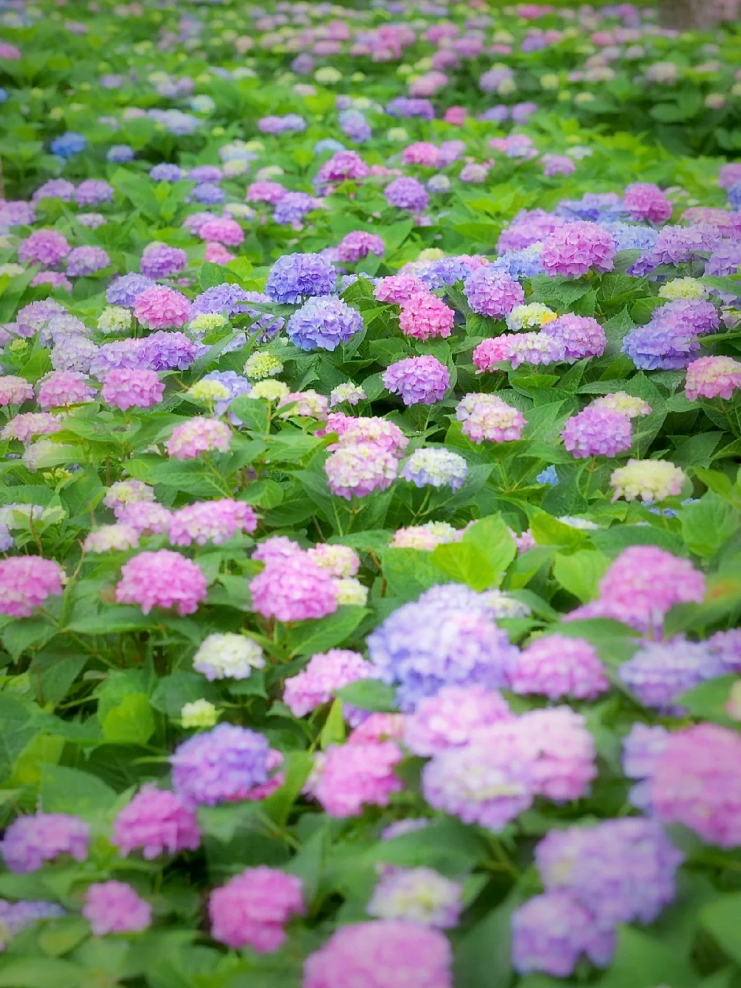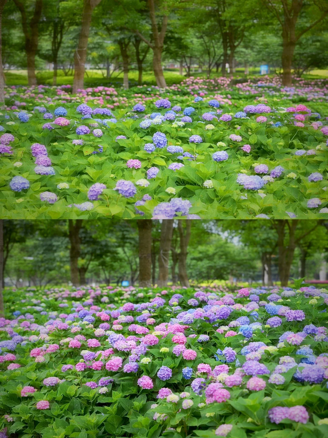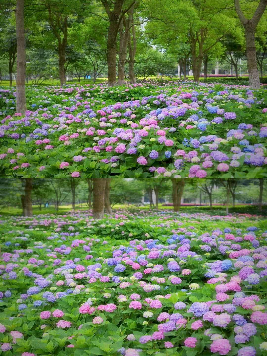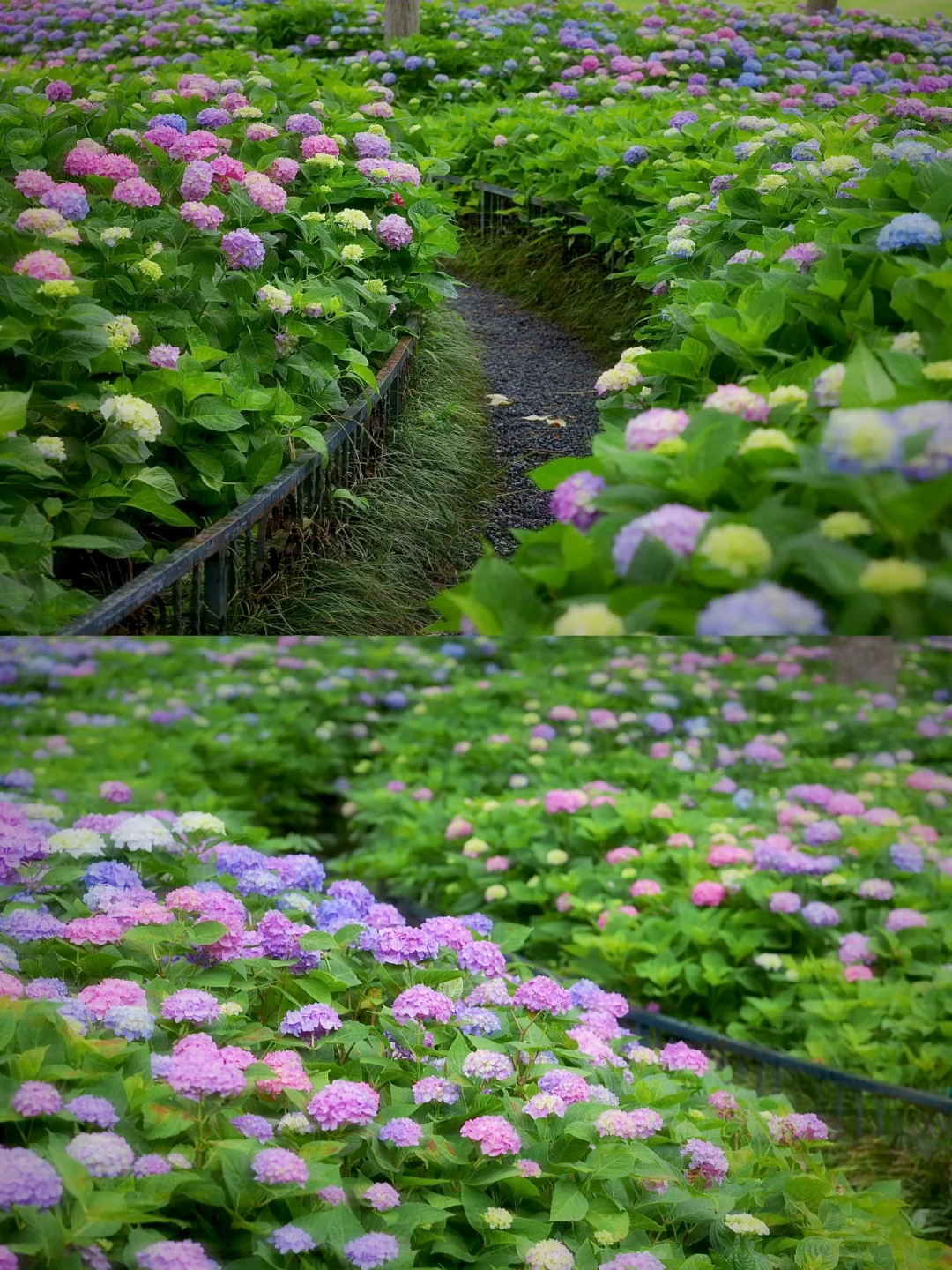 就能看到大片的无尽夏绣球花啦🩵💙💜