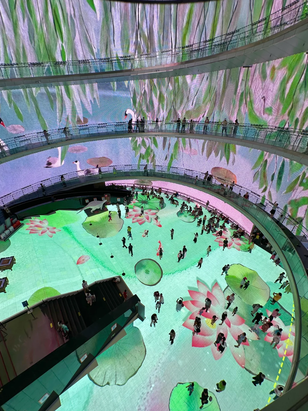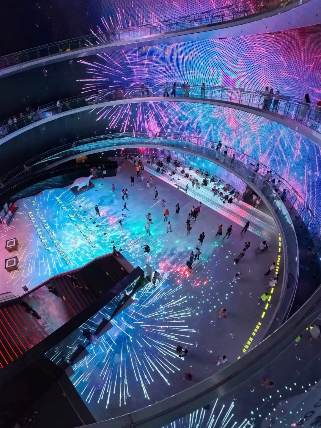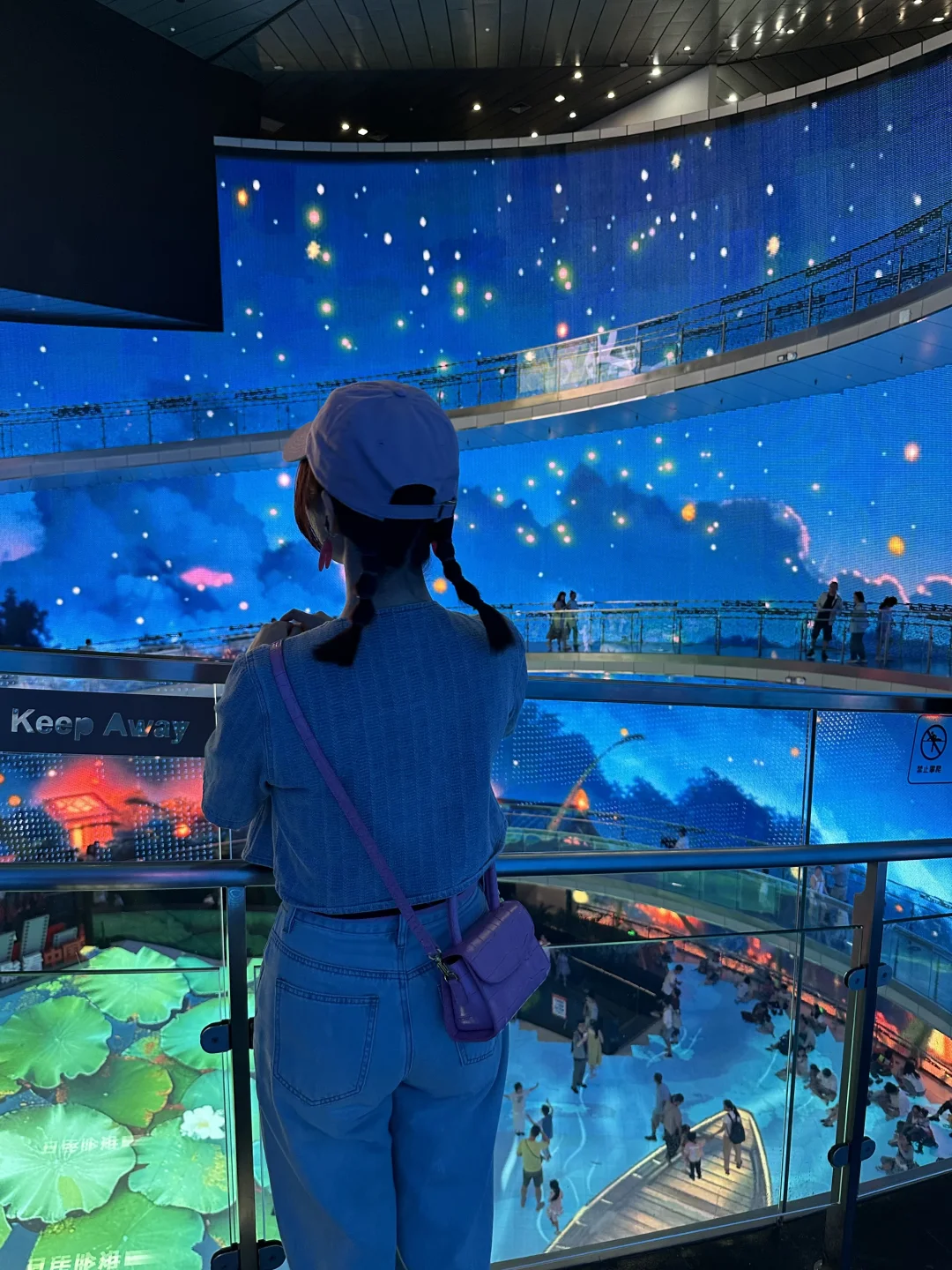 半小时一轮沉浸式主题动画:海底世界🌊、星空烟花🎆、24节气等等光影瀑布从顶楼倾泻,随手拍都是科幻大片!可以从三层环形楼梯慢慢走到一层园厅中央,沉浸式感受‼️