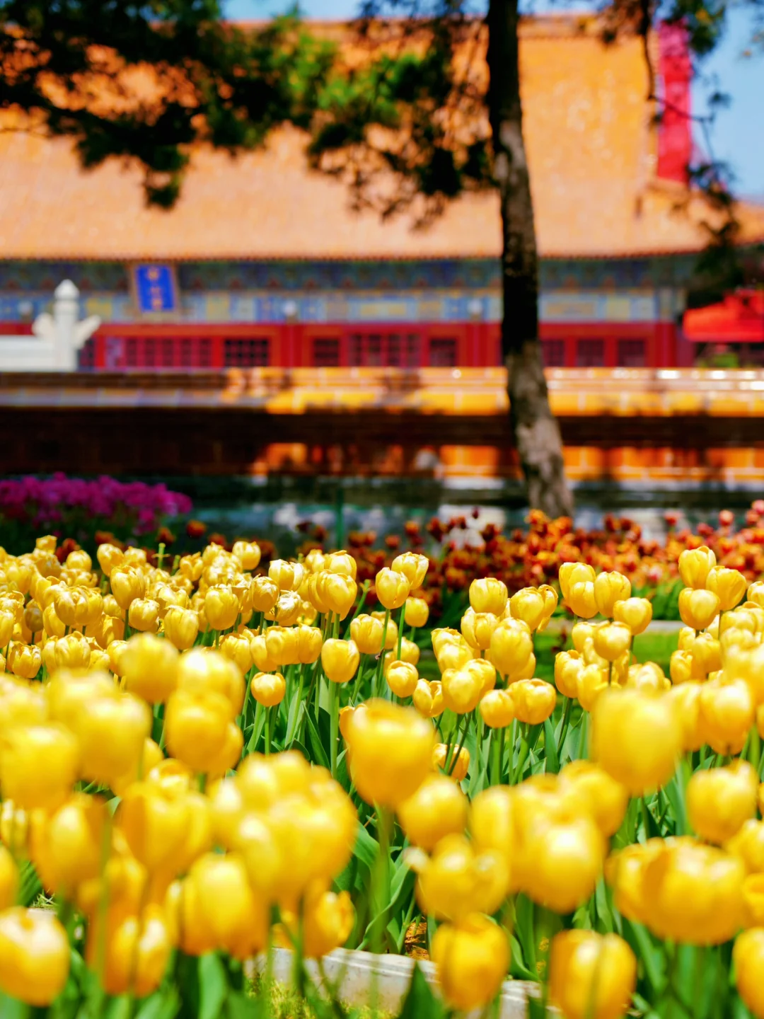 成片成片的花海在红墙金瓦间摇曳