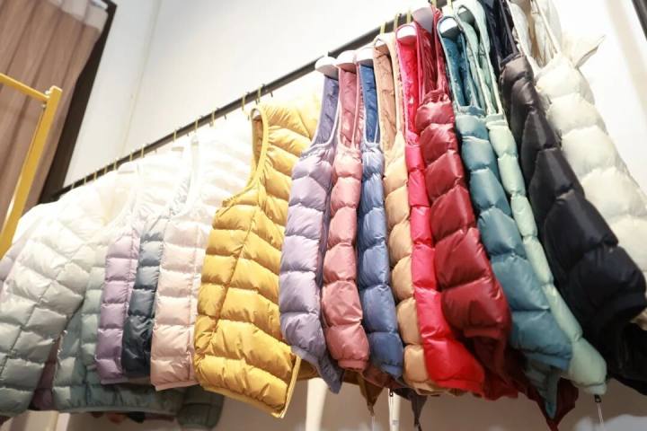 从服装城1号门径直走到底,一个百来方的大档口格外醒目。艾菩诺鸶的线下门店内挂满五颜六色的羽绒服,以轻薄基础款为主,客单价数百元。“我们是服装城第一批入驻的企业,从2011年开业那天起,这个档口就在这个位置。”艾菩诺鸶电商部总负责人吴梅介绍。