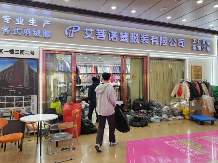 服装城内聚集的2000多家羽绒服商户,大多拥有自己的研发生产线,艾菩诺鸶也不例外。