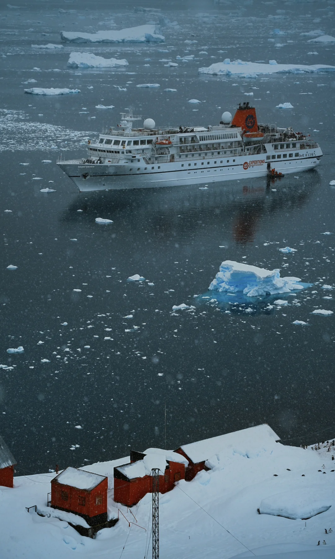 我们航行经过各国在冰雪中建起的科考站,只是几个小小的房子,几乎被全部埋在风雪里。当不同国家的人们来到这里,研究每一种声音,每一片雪花时,此时他们的心里一定不再有国界之分。