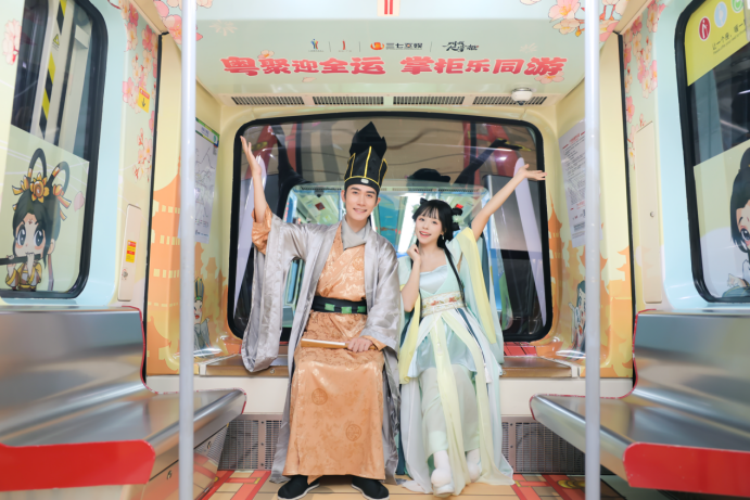 早在9月底,三七互娱就率先以线下场景破圈,将汴梁古风“开”进羊城地下——联手广州地铁推出“大掌柜全运主题”APM线专列。车厢化作移动展厅,两大主题车厢巧妙串联起汴梁的古典雅致与广府的活力潮流,成为城市中一道流动的风景线。与此同时,品牌还携手广州市交通运输局,在“爱在交通公益行”线下场地植入主题打卡活动,让运动热情从未来的赛场延伸到市民身边,使大家在沉浸式线下互动中提前感受全运会的独特魅力。