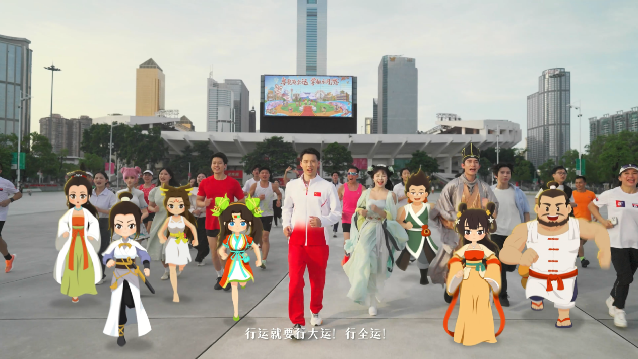 线上氛围持续升温之际,三七互娱又带着全运主题城市宣传片《广州,有运行》进行全运宣传。片中,游戏中的掌柜们与奥运男子跳水世界冠军陈艾森等人结伴,沿着羊城地标一路“寻宝”,将运动激情、游戏奇趣、广府韵味和广州美景巧妙揉合成一团“好运球”,以年轻态的视角为全运会花式打call。这部融合了AI科技与名人跨界的宣传片,传播量超过百万,让广州“左手科技感、右手烟火气”的形象深入人心。