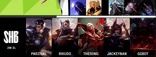 SHB选用:FarZival奥恩;Rikudo赵信;TheSong吸血鬼;JackeyNan霞;GGBot洛