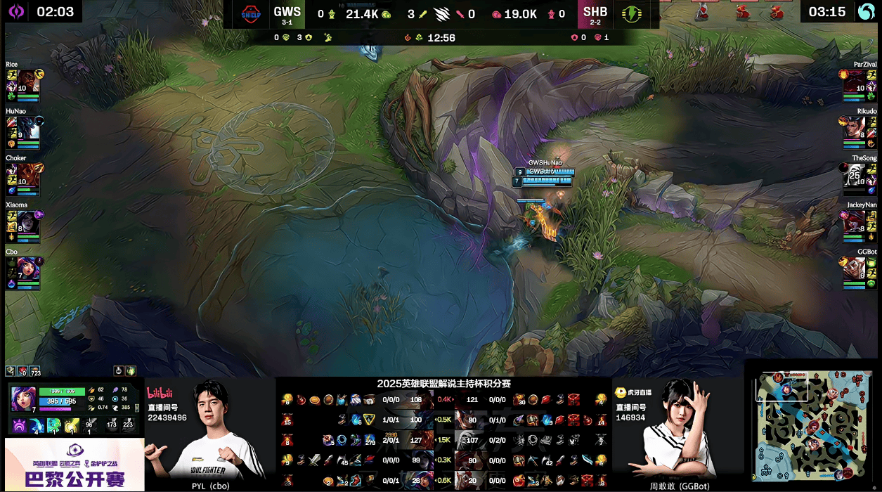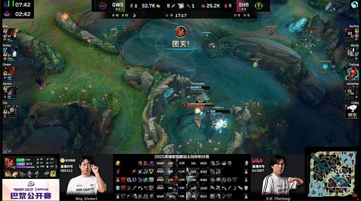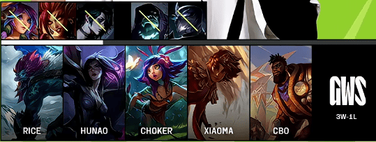 GWS选用:Rice奎桑提、Hunao巨魔、Choker岩雀、Xiaoma卡莎、Cbo妮蔻