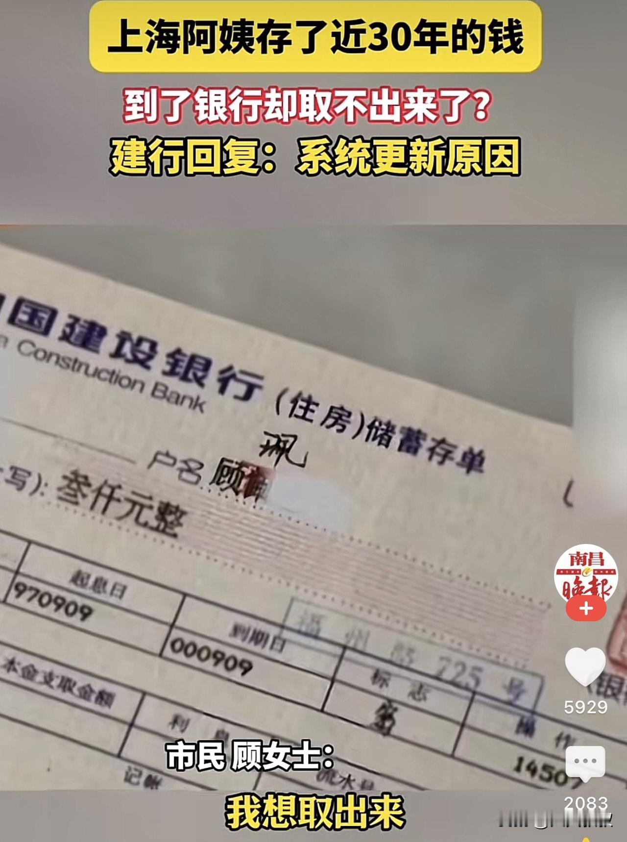 上海,一阿姨将两张存了近30年的存单拿到银行取现,不料银行柜员却表示,系统查不到