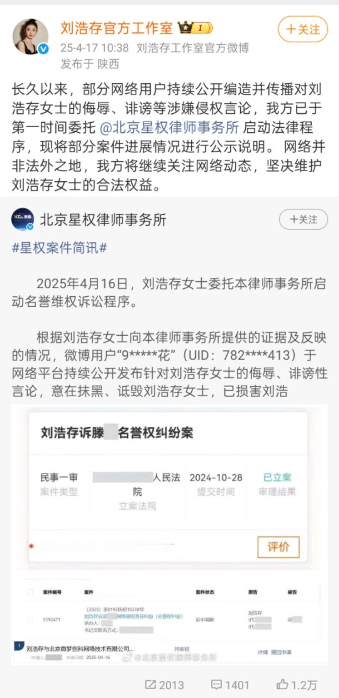 刘浩存告黑维权案胜诉,呼吁网友理性分辨信息真伪,共同维护网络生态环境!相信浩存未
