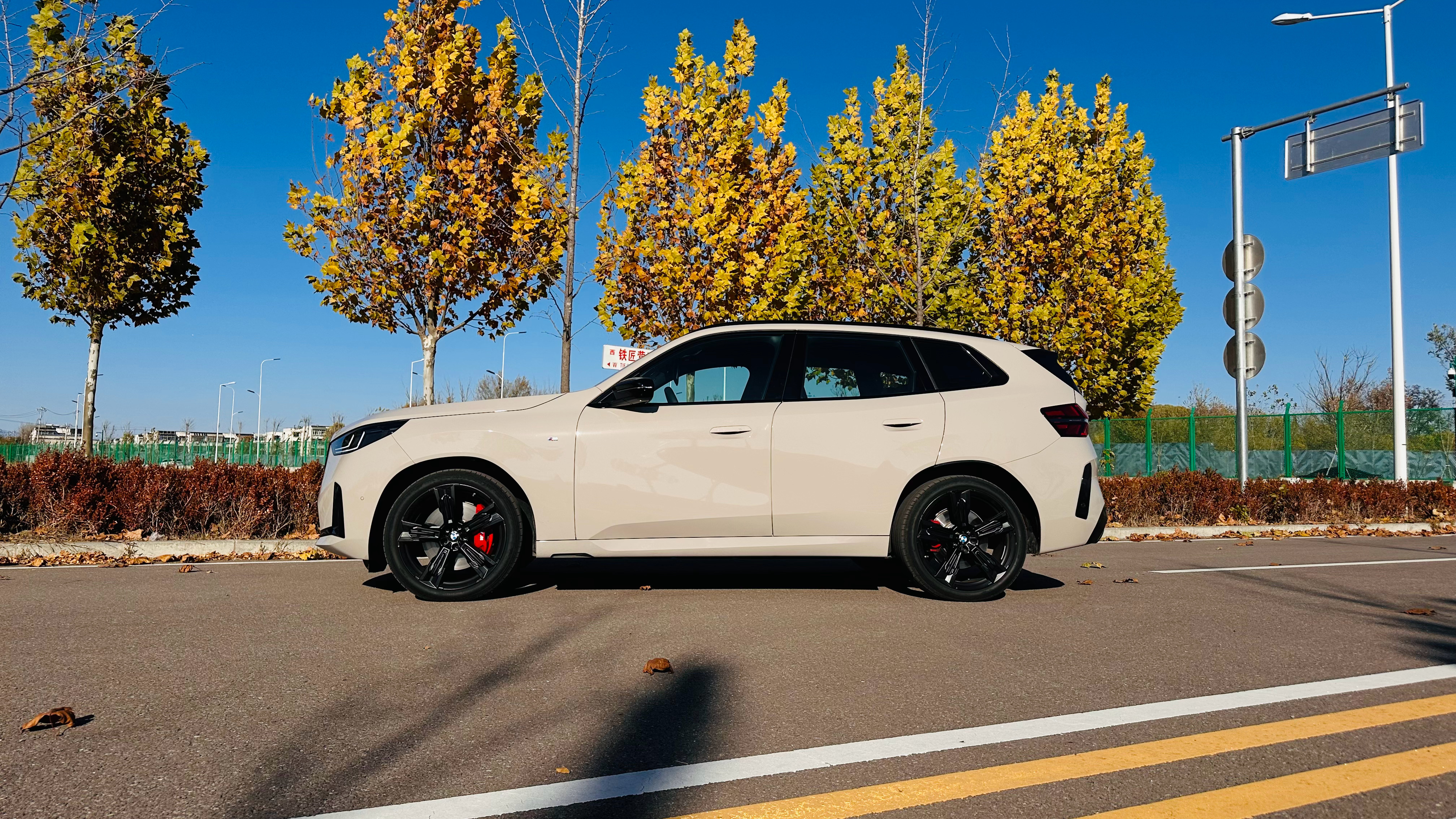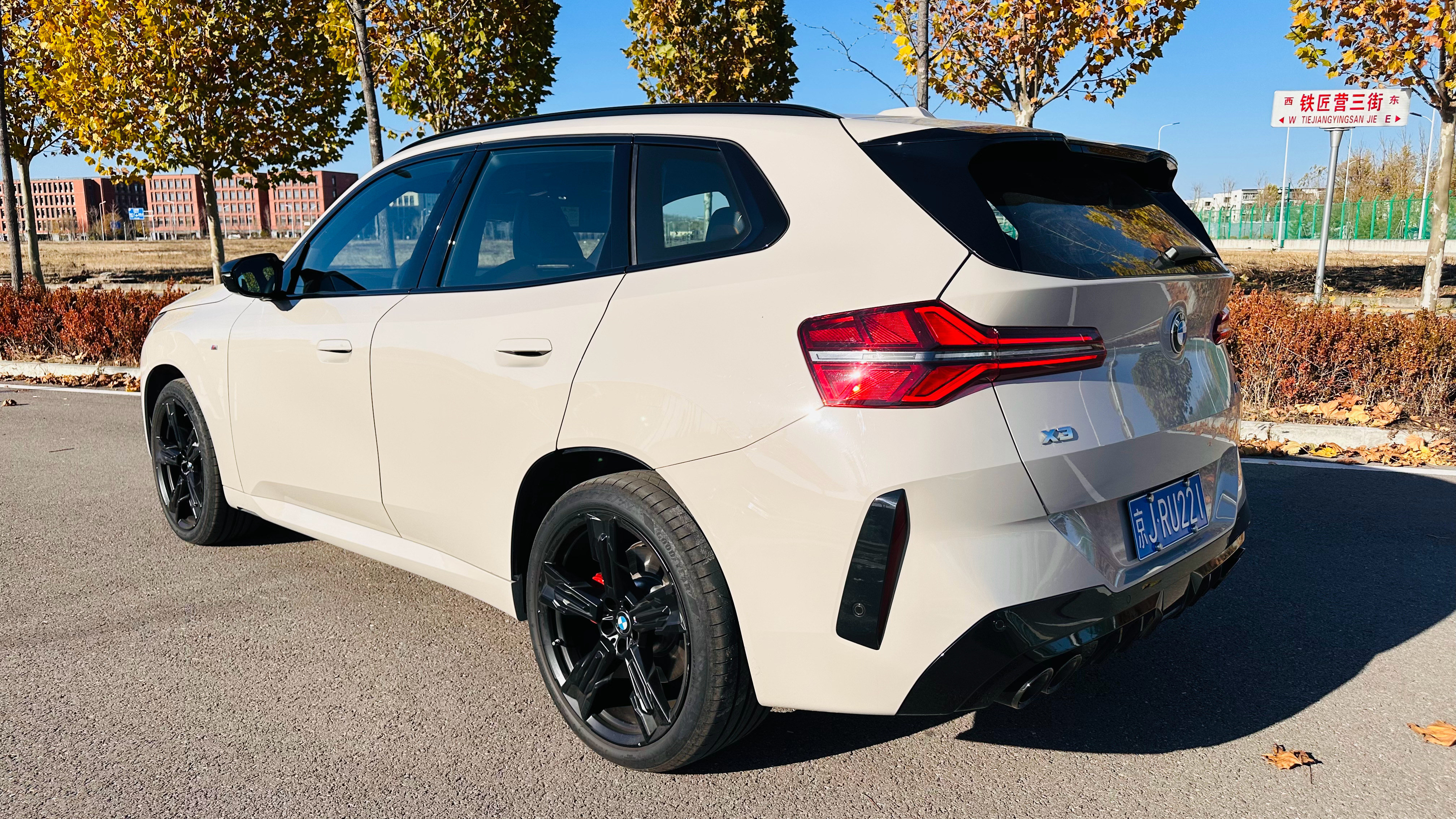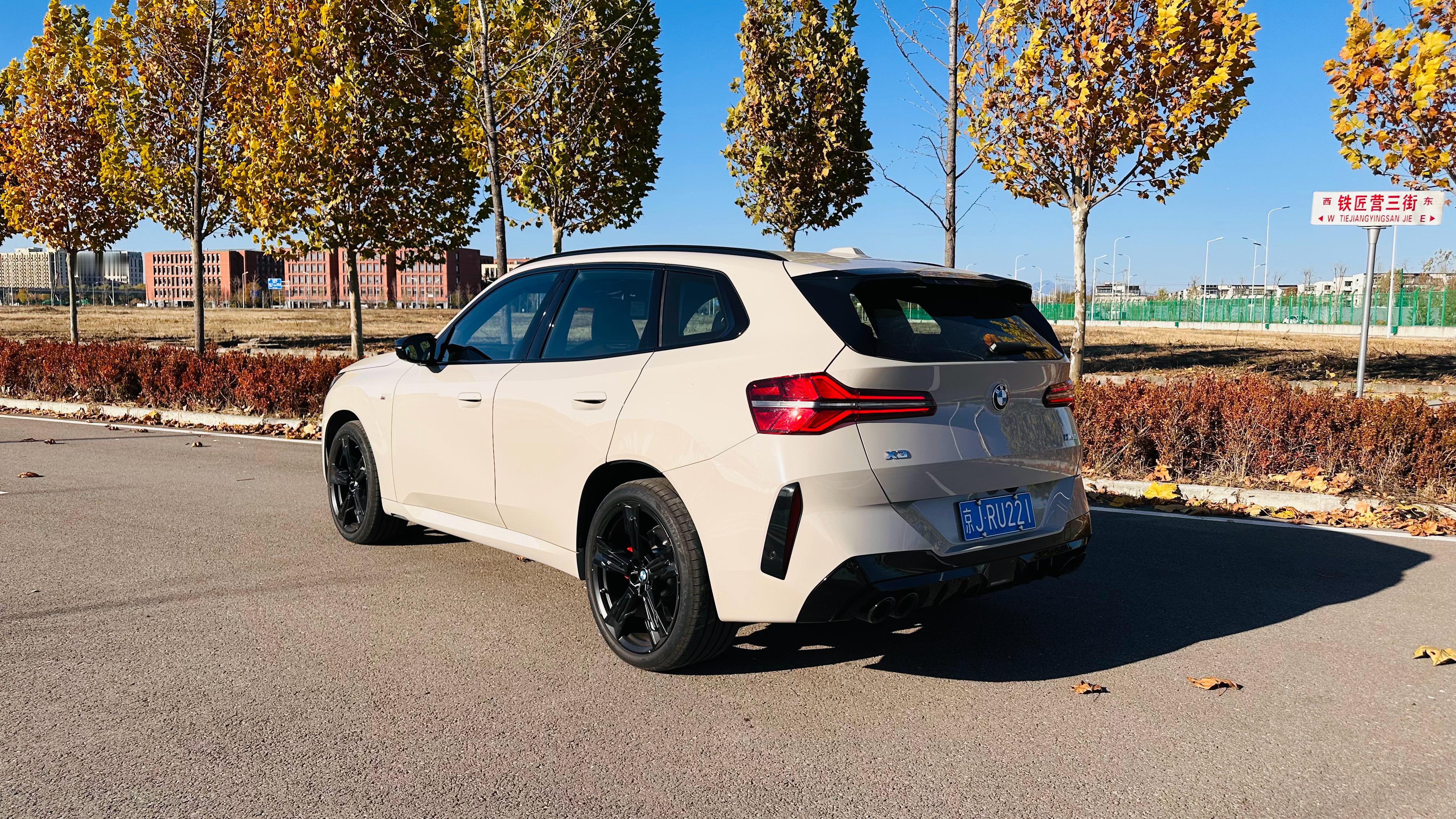 X3 M50 (G45)这一代与 XM 一脉相承的尾部设计我太喜欢了。 让 X3 从侧面看上去不像是一款 SAV 而更像猎装车。沙丘灰广告色也非常棒, 介于奶白和灰色之间,有淡淡的黄色,在冬日夕阳下,会泛出淡淡粉色金属微光。视频剪完前我可以先给个结论,各位完全不用担心国产长轴距版 X3 和标轴之间在驾控上有什么短板。 这俩真的可以做到高度统一。 BMW 用调校功力证明了这一点。