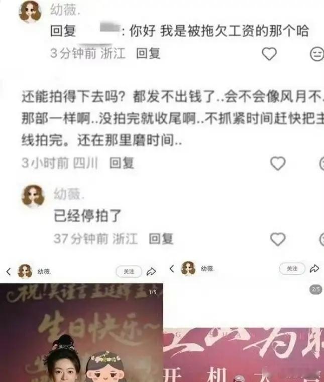 《江山为聘》因为拖欠工资被拉横条了吴谨言和陈哲远的组,这部剧一开始就因为男主女番位的问题闹得很不愉快,于正甚至下场内涵陈哲远,好不容易原阵容开拍了,但是投资没到位,现在因为拖欠工资被拉横幅讨薪,这就是于正说的一番女主单人过会,过了会拉不满投资,那剧就很难制作精良,甚至像现在一样停拍。