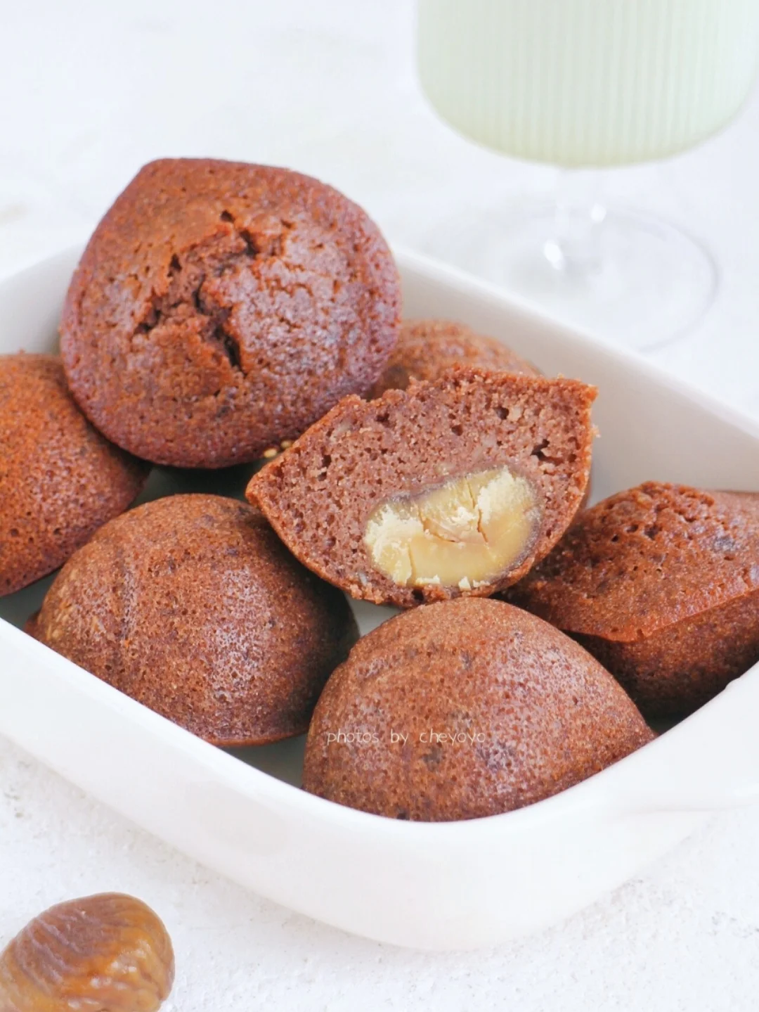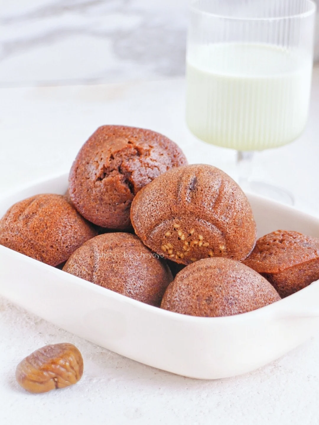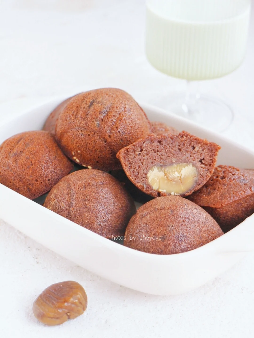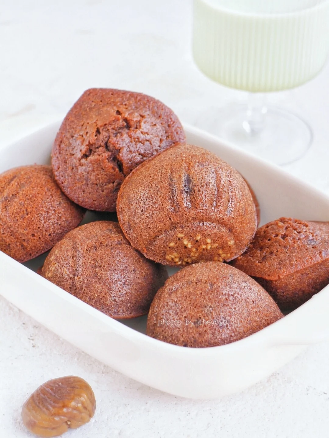 加了满满栗子泥的玛德琳蛋糕,造型可爱,味道浓郁,里面还藏着一整颗栗子仁哦!做法快手又简单,还不需要打发~[哇R][哇R]