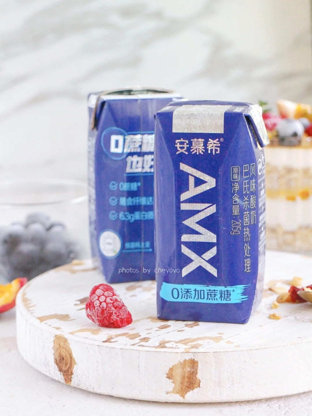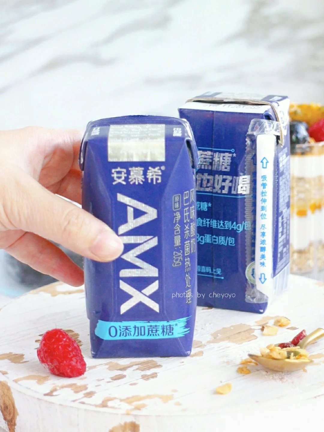 做这款燕麦杯用的是燕麦麸皮,属于低GI食物,热量低又饱腹;🥛酸奶使用的是AMX0蔗糖小黑钻,口感浓郁,每罐有4g膳食纤维,不仅控糖还可以调节肠道功能。